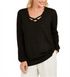 JM Collection Women's Lurex Lattice Neck Blouse Black Size Small