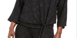 JM Collection Women's Metallic Tie Front Top Black Size 2XL