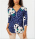 JM Collection Women's Mixed Print Zippered Neck Top Blue Size Small