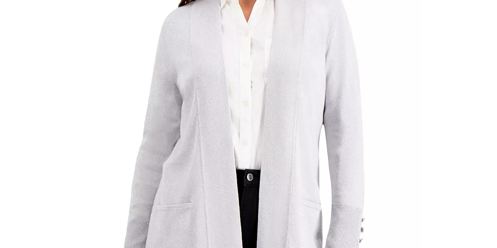 JM Collection Women's Petite Button Sleeve Flyaway Cardigan Gray Size Petite Small