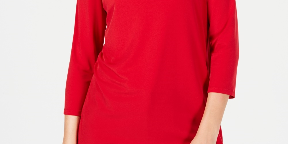 Designed to fit and flatter 5'4 and under frame|Embellished scoop neckline|3/4-sleeves with cold-shoulder cutouts|Polyester/spandex|Machine washable