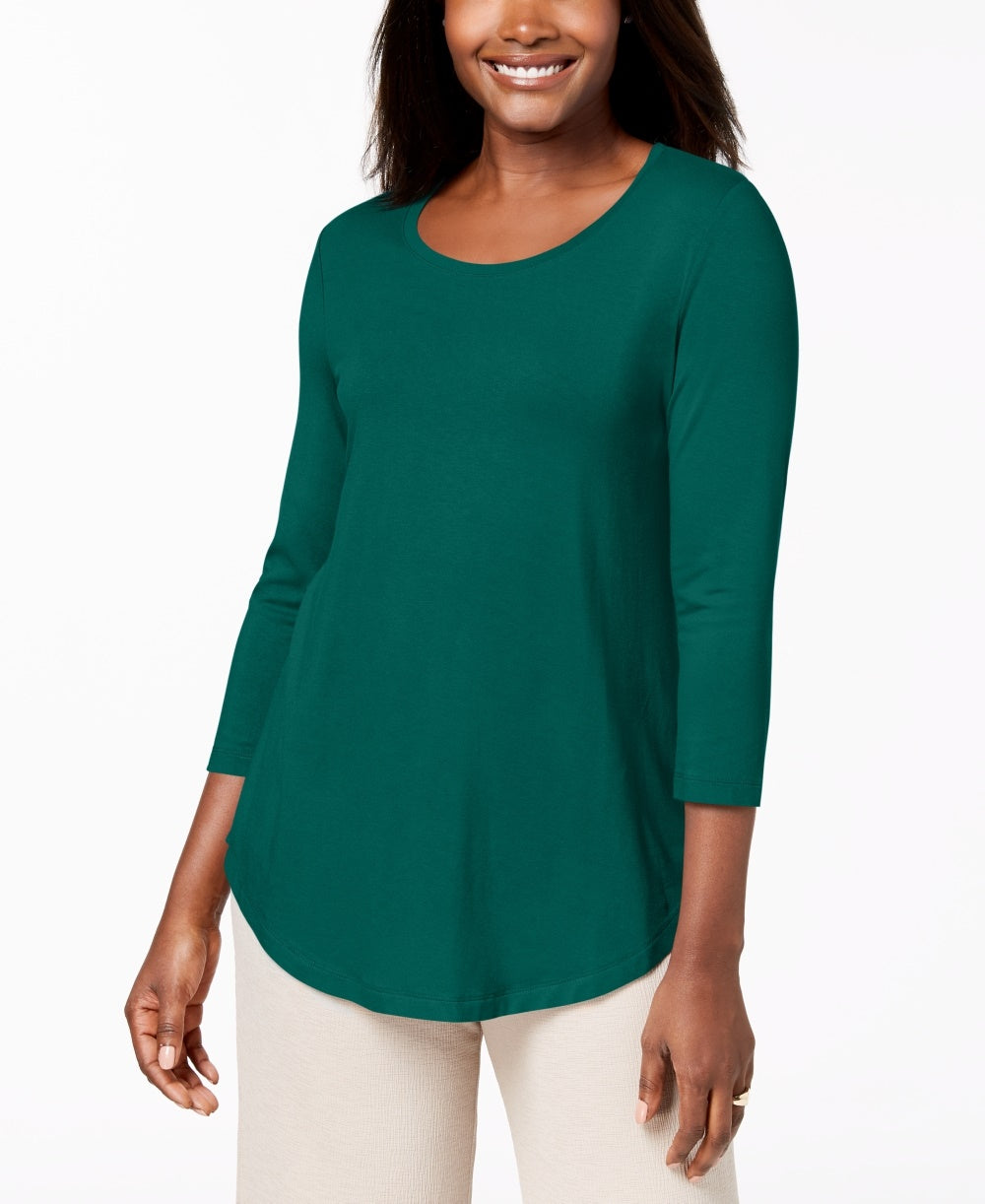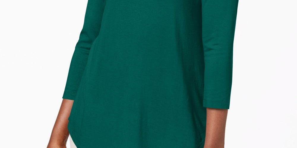 JM Collection Women's Petite Three-Quarter-Sleeve Top Green PS/M