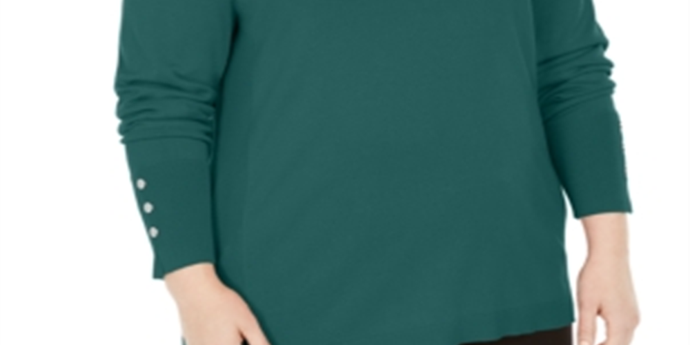 JM Collection Women's Plus Button Cuff V Neck Sweater Sequoia Size 0X