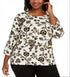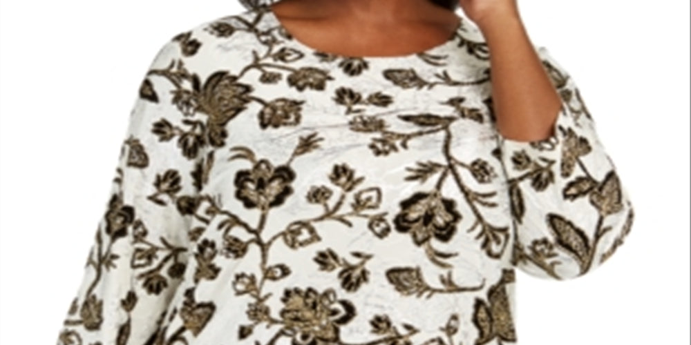JM Collection Women's Plus Metallic Floral Print Top Eggshell-Black Size 2X