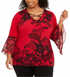 JM Collection Women's Plus Printed Bell Sleeve To Red-Black Size -0X
