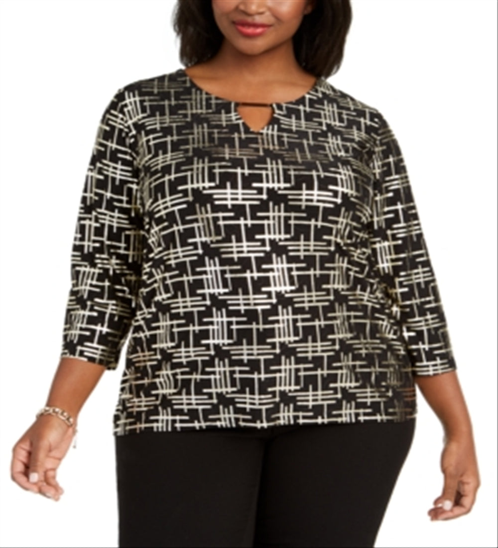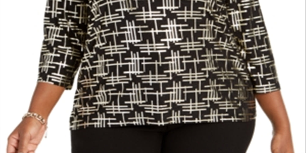 JM Collection Women's Plus Printed Jacquard Top Black - Gold Size 0X