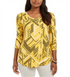 JM Collection Women's Printed 3/4-Sleeve Scoop-Neck Top Yellow Size S