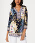 JM Collection Women's Printed Embellished Tunic Blue Size Petite Small