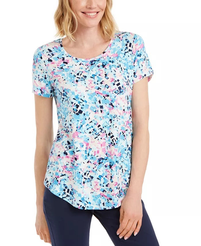 JM Collection Women's Printed Scoop Neck T-Shirt Navy Size Small