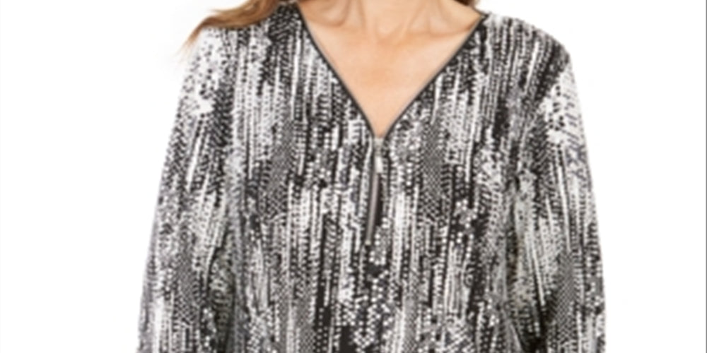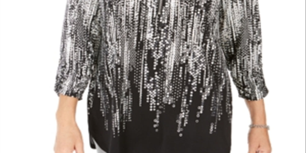JM Collection Women's Printed Zipper Neck Tunic Black Size Small
