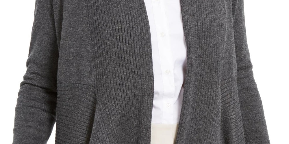 JM Collection Women's Ribbed Handkerchief-Hem Cardigan Grey Size Large