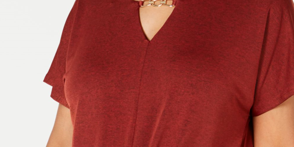 JM Collection Women's Short Sleeve Keyhole Wear to Work Top Red Size Large