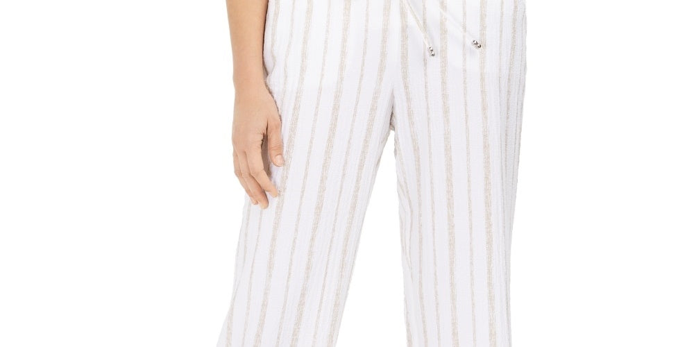 JM Collection Women's Striped Pull On Pants White Size XX-Large