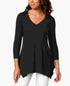 JM Collection Women's V Neck Handkerchief Hem Top Black Size X-Small