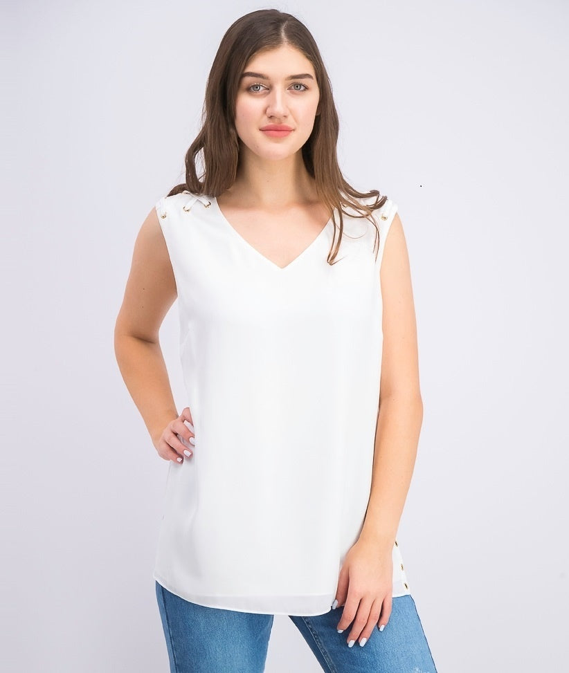JM Women's Collection Grommet Tie-Hem Top White Size Large