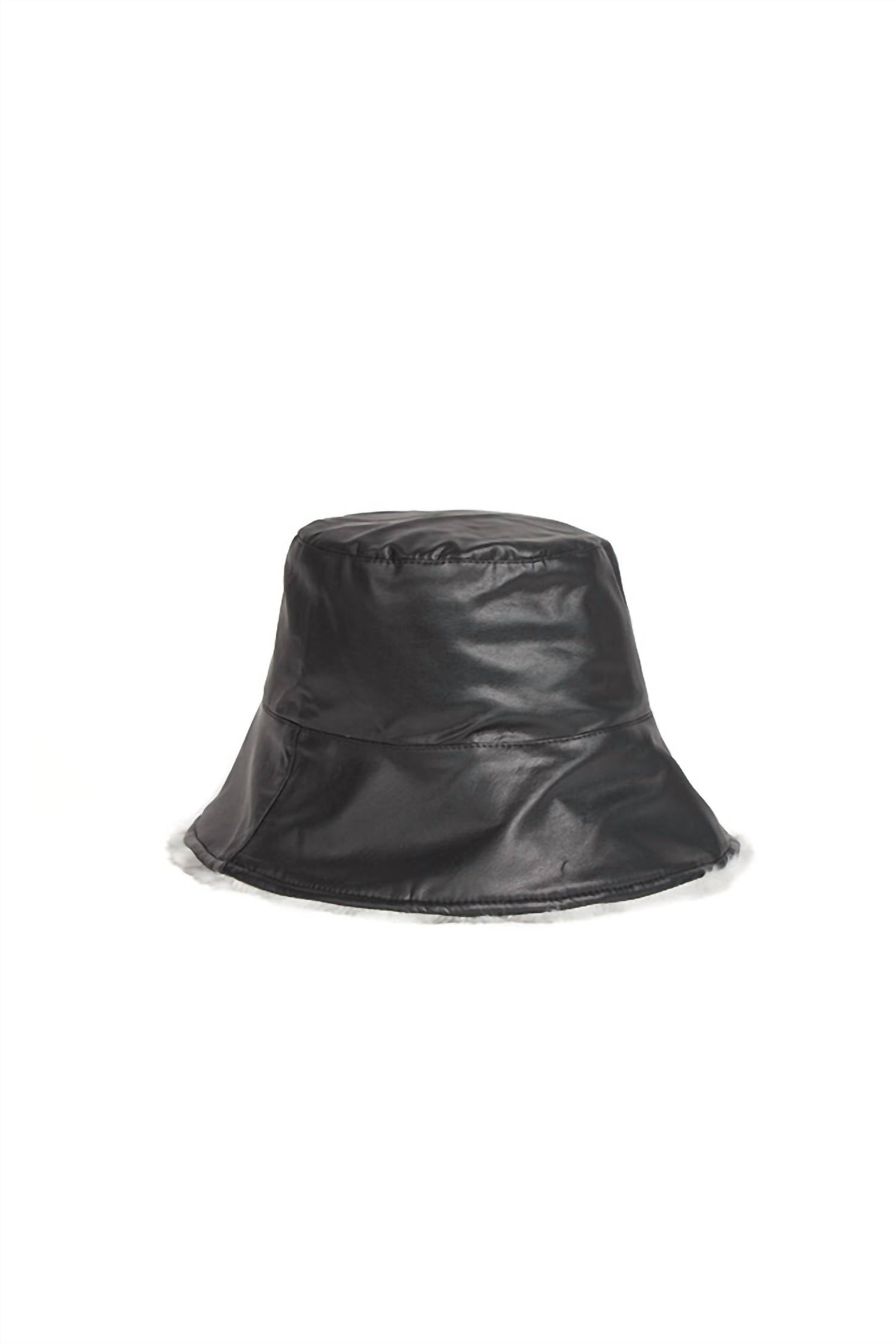 Turn heads in this stylish and chic hat. Not only is this accessory a must for keeping the sun out of your face, it will also be the perfect complement to any cute warm-weather outfit. Elevate your outdoor ensemble with the Women's Frosty Bucket Hat by Jocelyn. This chic hat features a stylish faux leather outer layer complemented by a cozy faux fur lining, ensuring warmth and comfort with a touch of glam. Available in a classic black color.