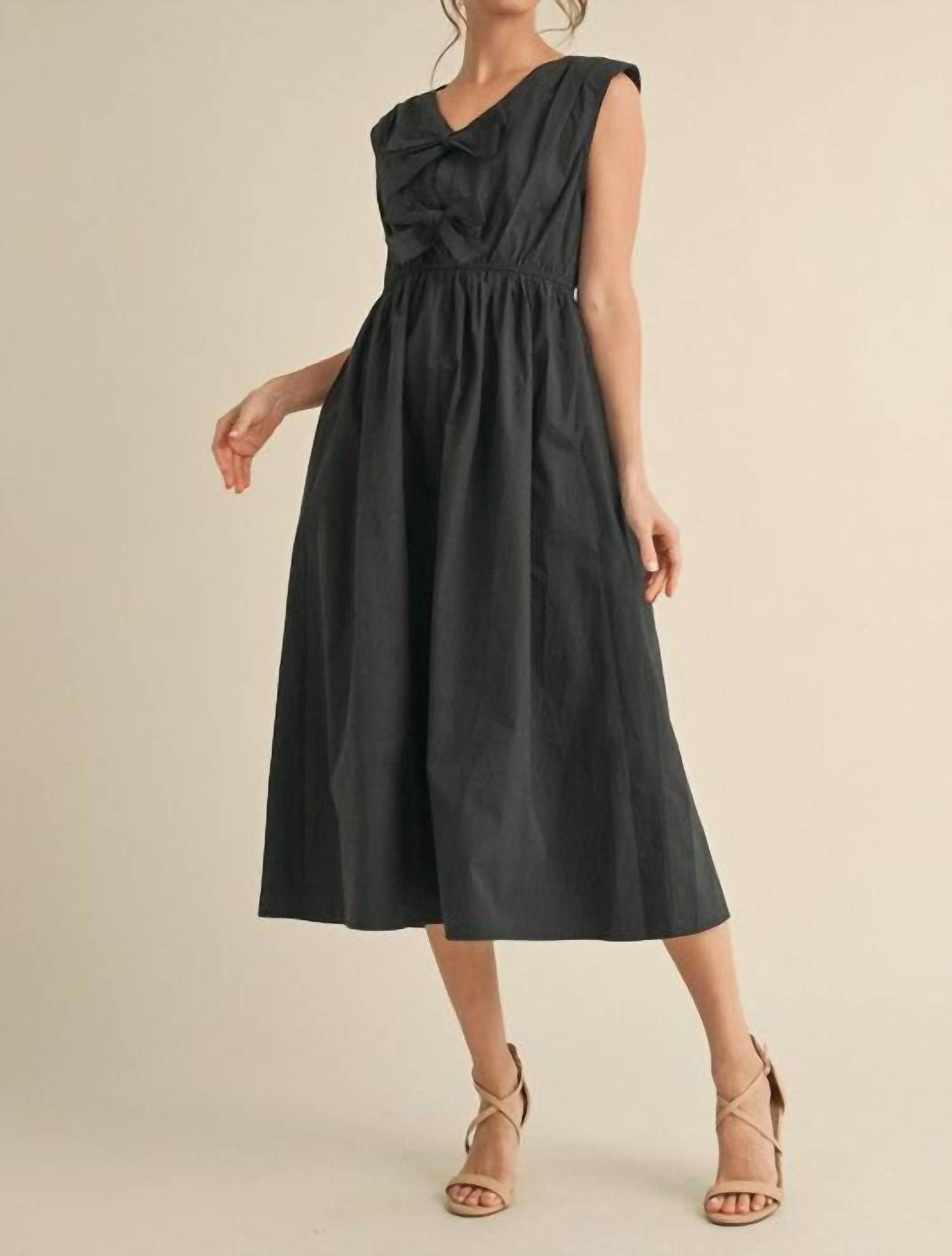 Introducing the Jodifl Poplin Midi Dress With Pockets, a perfect blend of style and comfort for a minimalist fall look. Made from 100% cotton, this sleeveless dress features an A-line silhouette with a flattering V-neckline, complete with two tie bands at the front and functional side pockets. Its lightweight, non-sheer fabric makes it an ideal choice for a church gathering or Thanksgiving occasion. The pull-on closure further enhances its effortless appeal. Model is 5'10'' and is wearing a Small.