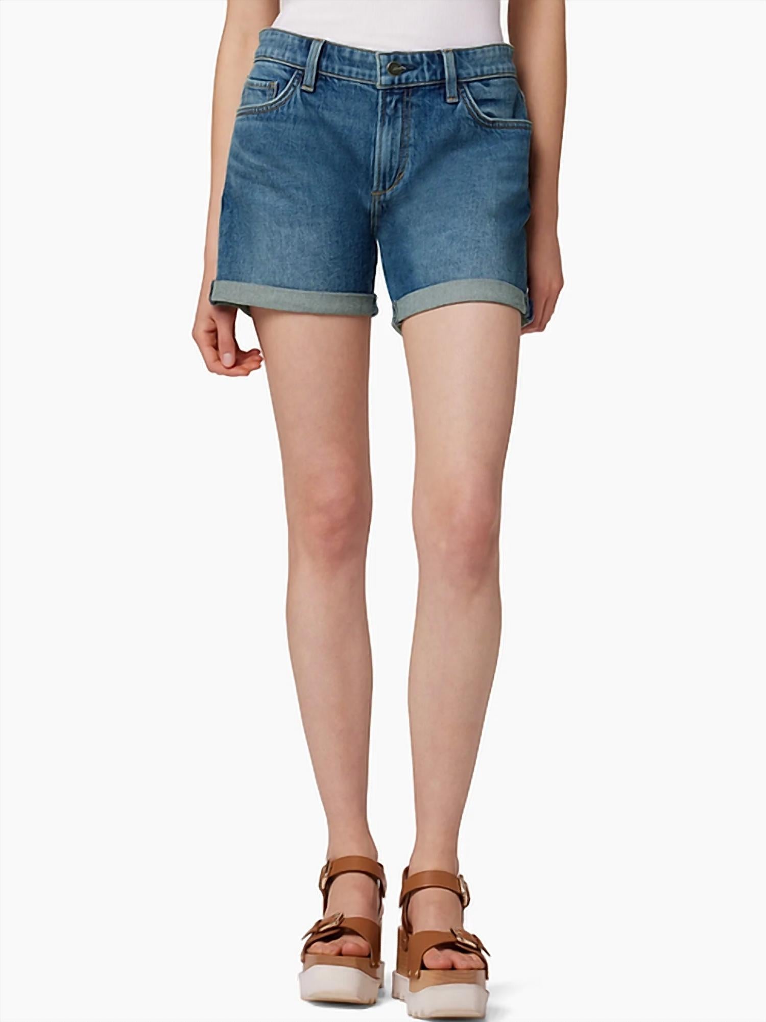 Not only cute but extremely comfortable. The jean shorts you will be reaching for all season long. Designed for effortless style, the Joe's Jeans Double Rolled Short in Burden features a high-rise 9.5" fit with a comfortable 5" inseam, perfect for summer vacations. These women’s solid jean shorts showcase a 5-pocket silhouette with a zip fly and button closure for added convenience. Details like contrast stitching, silver-tone hardware, and a cuffed hem enhance its trendy streetwear vibe, while the faded and whiskered finish provides a cool, lived-in look. Care: Machine wash.