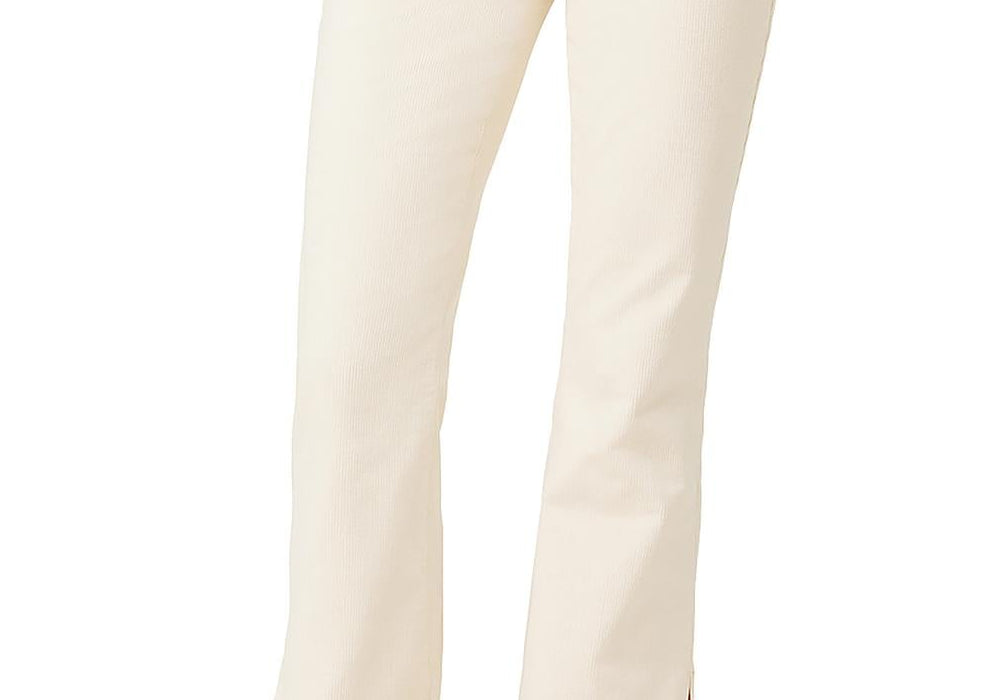 About the brand; Flawless fits for every shape. The Frankie Boot Cut in double cream with | and classic five-pocket Inseam approximately 34in 9in front rise Leg opening has an approximate 19in circumference Zip fly with button closure 97% cotton| 3% elastane Machine wash Imported