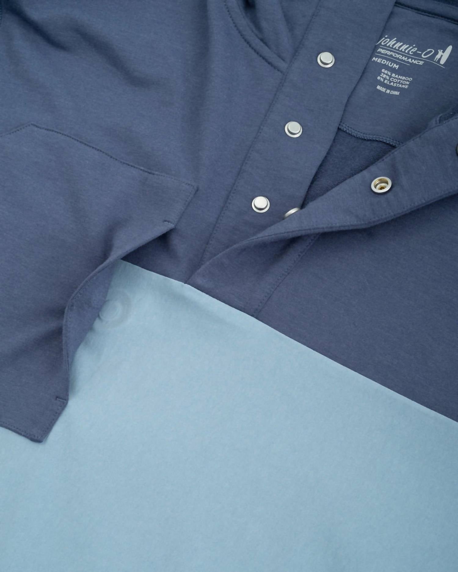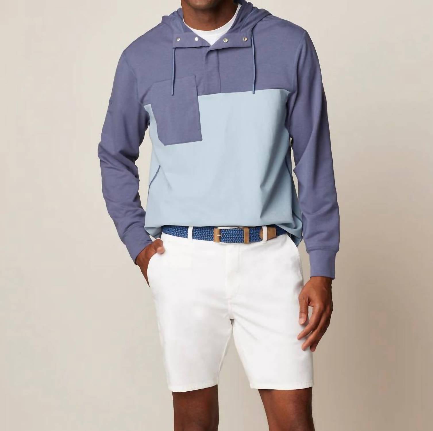 Introducing the Men's Harrison Mixed Media Henley Hoodie by JOHNNIE-O, a stylish addition for any casual wardrobe in a timeless solid Lake color. This hoodie features long sleeves and is crafted from a comfortable cotton blend, ensuring high-quality wear. Designed with a convenient snap closure and a hooded neckline, this piece adds a modern touch to your sweatshirt collection. For easy maintenance, it is machine washable and can be tumble dried.