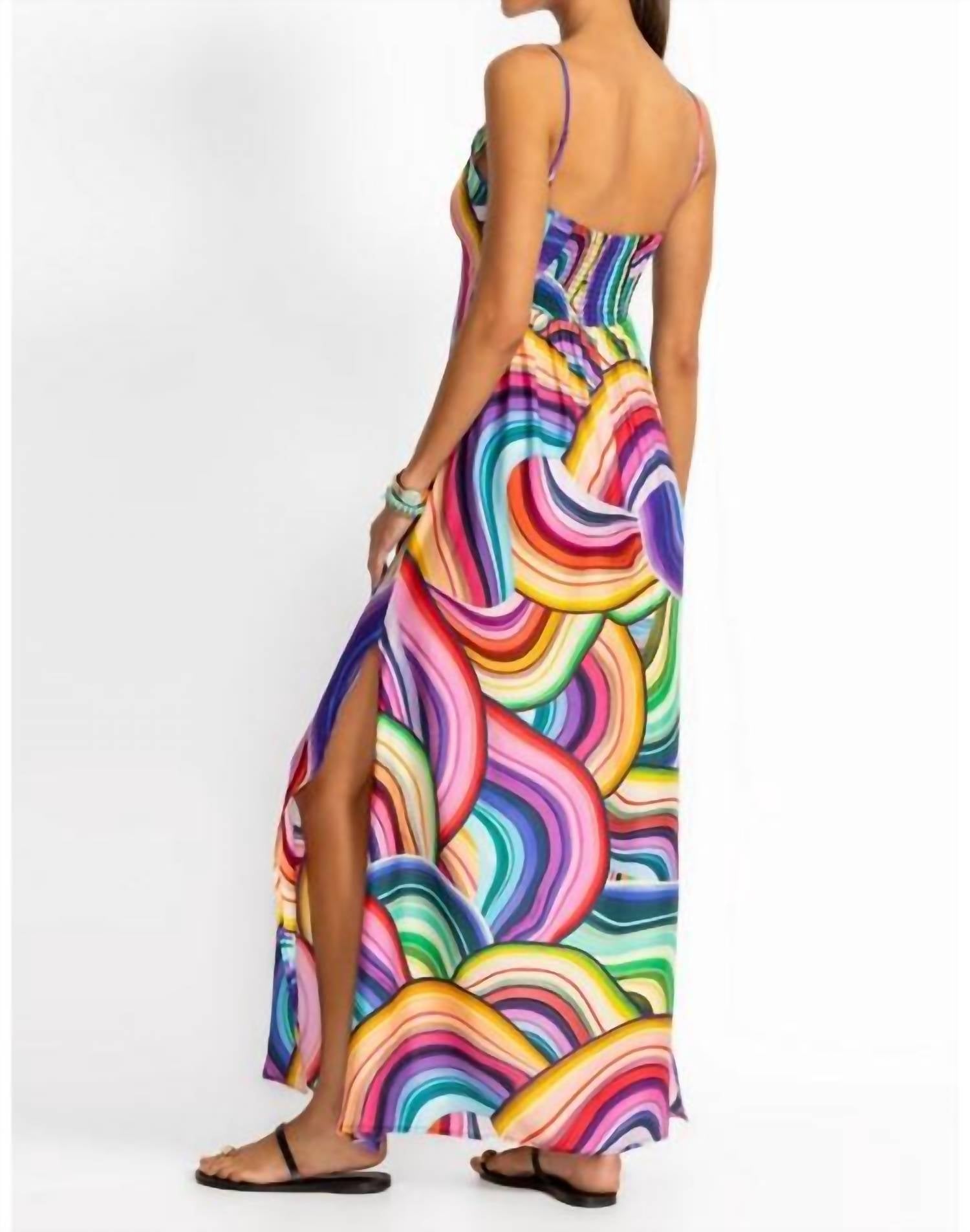 Experience the gentle breeze in the Abel Back Smocking Slip Maxi Dress, made from a luxurious blend of materials that provides an airy and elegant drape. With its bold swirl pattern, smocked back, and adjustable straps, this beach-ready maxi dress combines comfort with eye-catching style, making it perfect for any occasion, from day to night.