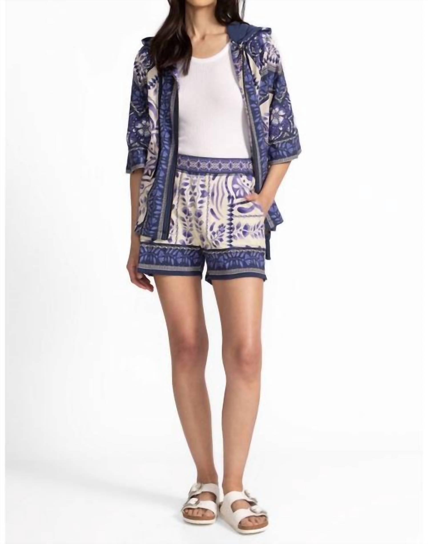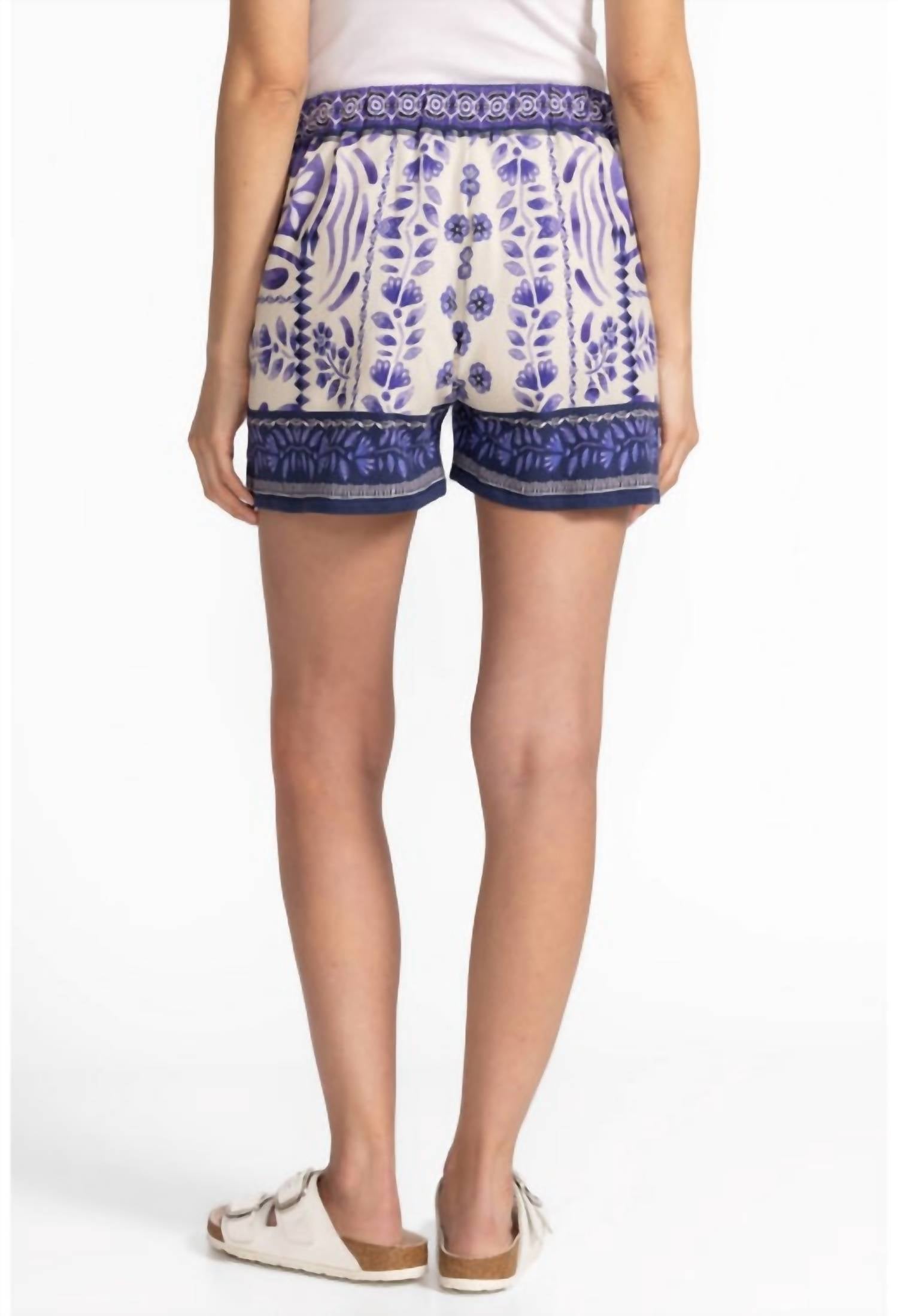 Match these cargo shorts with your favorite tank or tee for the perfect laid-back look. Ornately embellished with a vibrant blue pattern, the Starling Easy Shorts offer a fresh take on casual wear. Crafted from a rich cotton blend with a hint of stretch, these brilliant shorts offer an elastic waist and are finished with a contrasting waist and hemline. Machine Wash