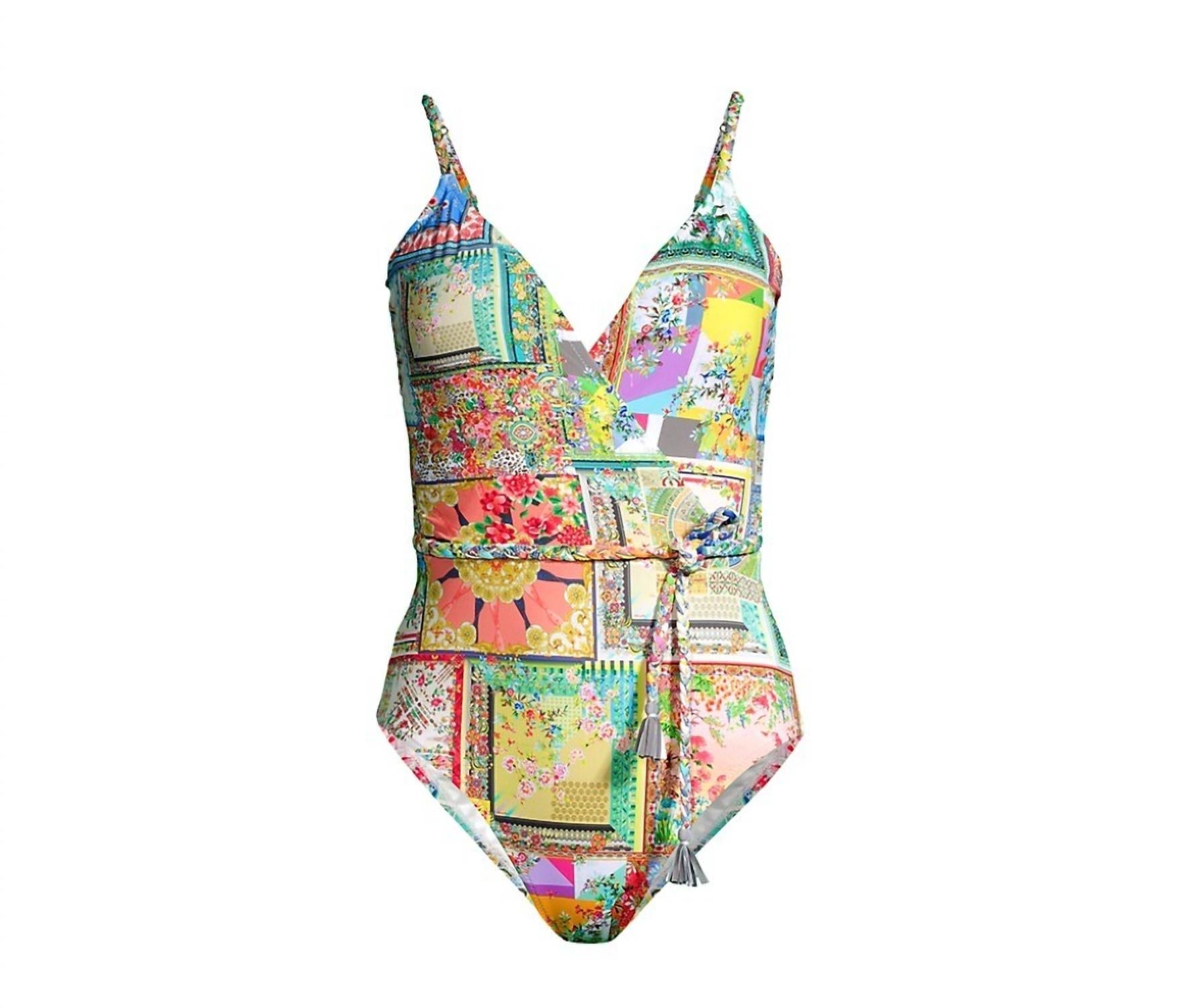 A one piece so chic you could even wear it as a bodysuit with your favorite pair of jeans.Classic cut, this gorgeous artisan-inspired suit features bright floral details and an ultra-flattering fit. Chlorine, fade and pill resistant. UPF 50+ offers sun protection from harmful UV rays. Model is 5'9" wearing a size Small. Measurements for size medium: Front Rise Length- 18", Bust- 28". Hand wash cold.