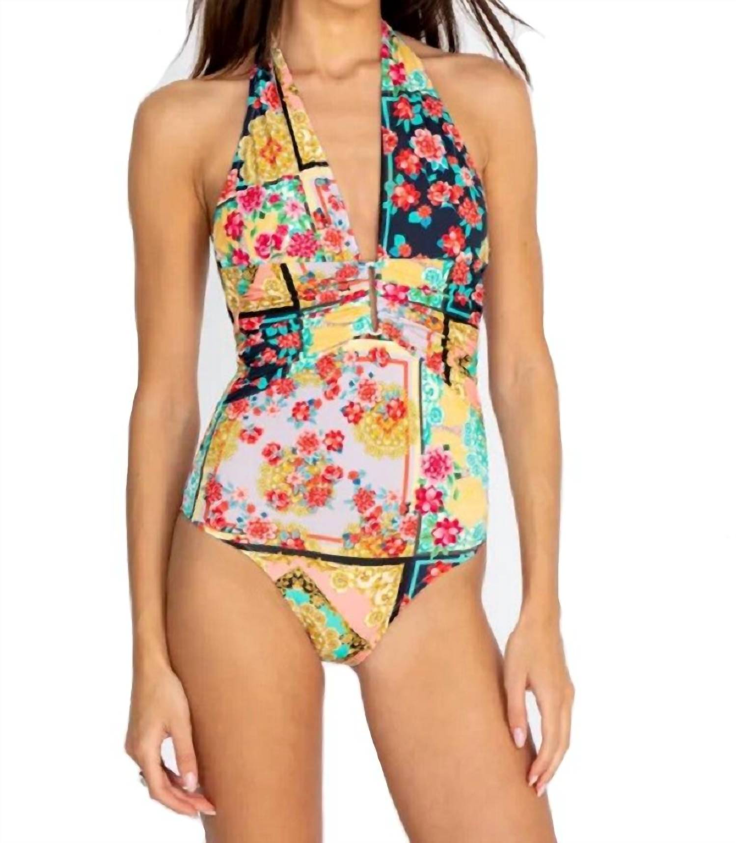 A one piece so chic you could even wear it as a bodysuit with your favorite pair of jeans. • 83% Polyamide/17% Elastane• Elastic in waistband• Measurements for size Medium: Neck Strap Length - 35", Underbust - 20"Its plunging neckline and detailed print pattern throughout the bust and bottom make it a modern take on a classic design.