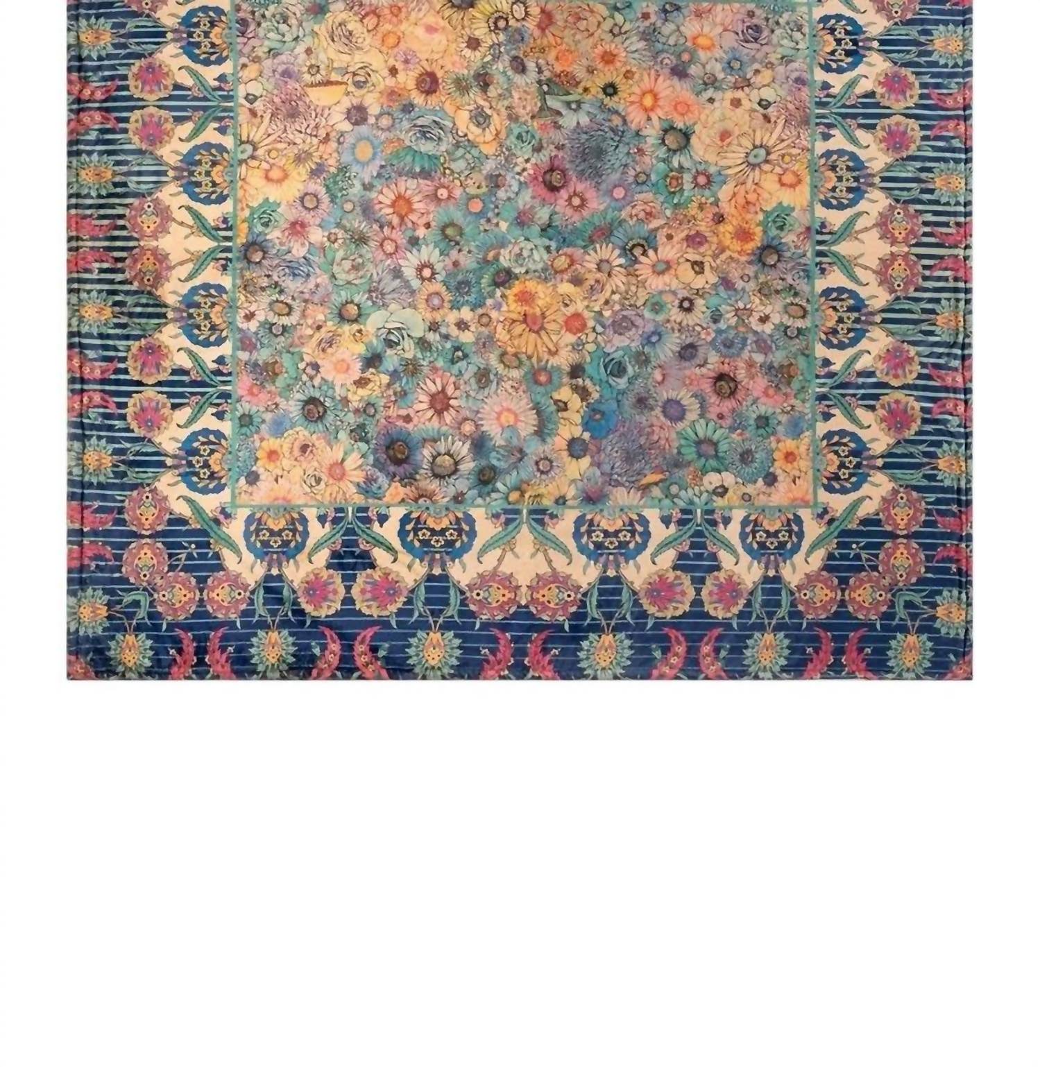Experience the luxurious comfort of the Laurel Canyon Cozy Blanket by Johnny Was, a must-have for travel in a serene sage blue. Crafted from 100% polyester, this reversible blanket extends to 75" x 68", offering ample coverage and warmth. It comes with a separate bag featuring a unique tassel tie, making it easily portable for your adventures. Care for this blanket is simple: machine wash cold, use only non-chlorine bleach when needed, tumble dry low, and warm iron if required. Rh23425-2.