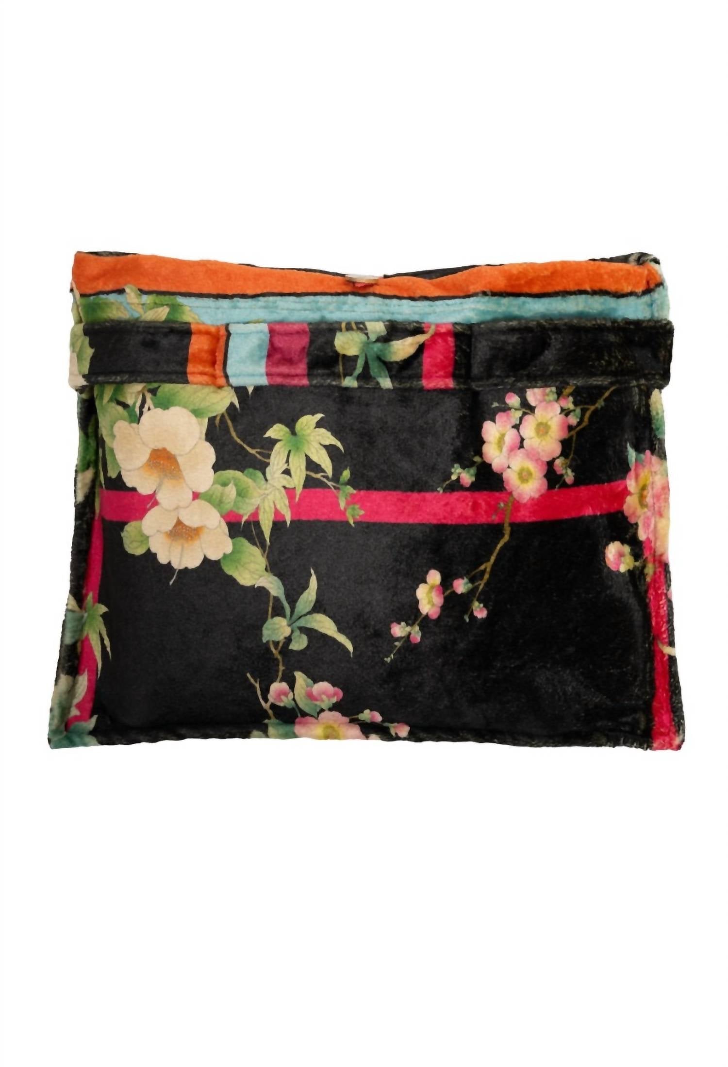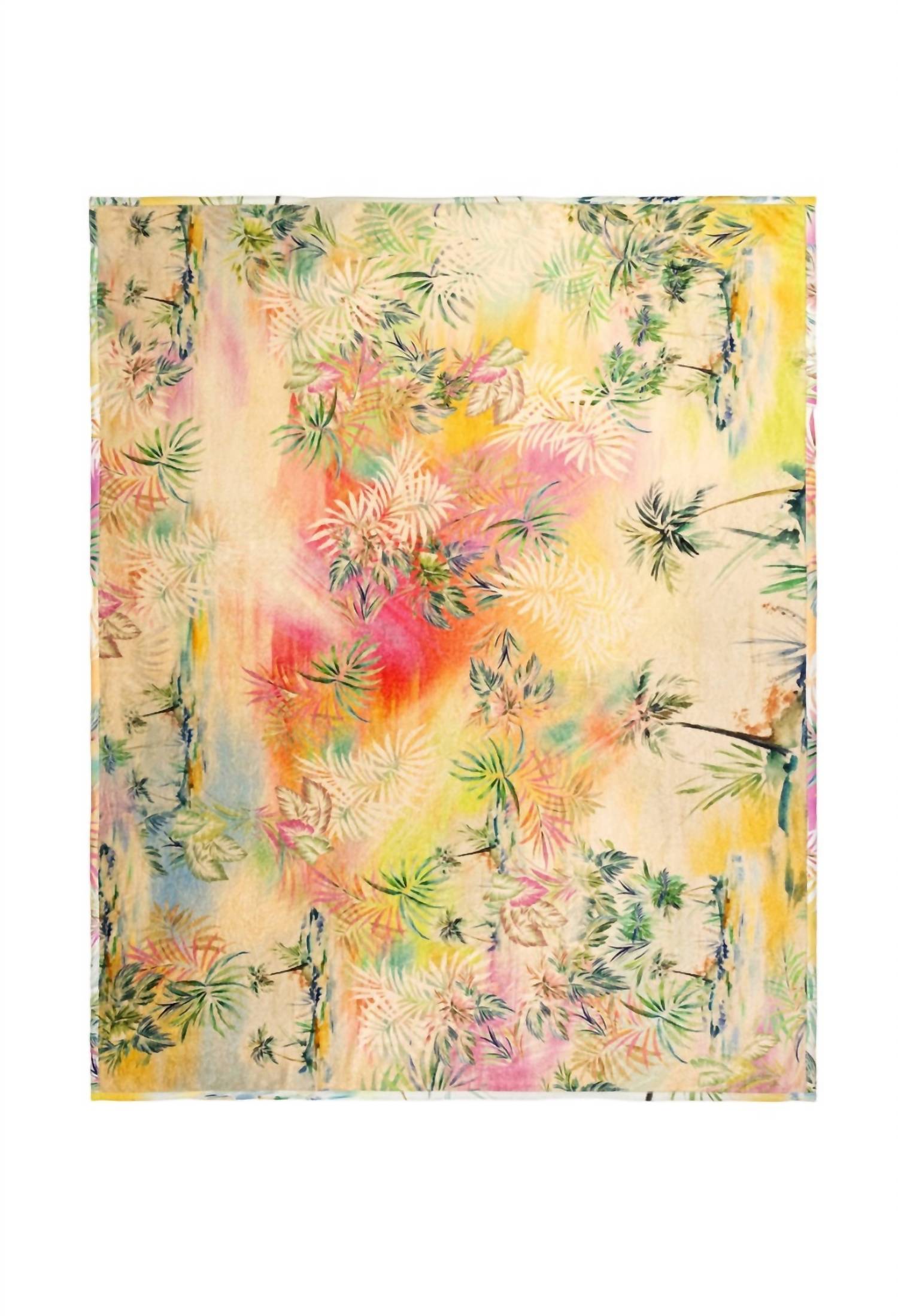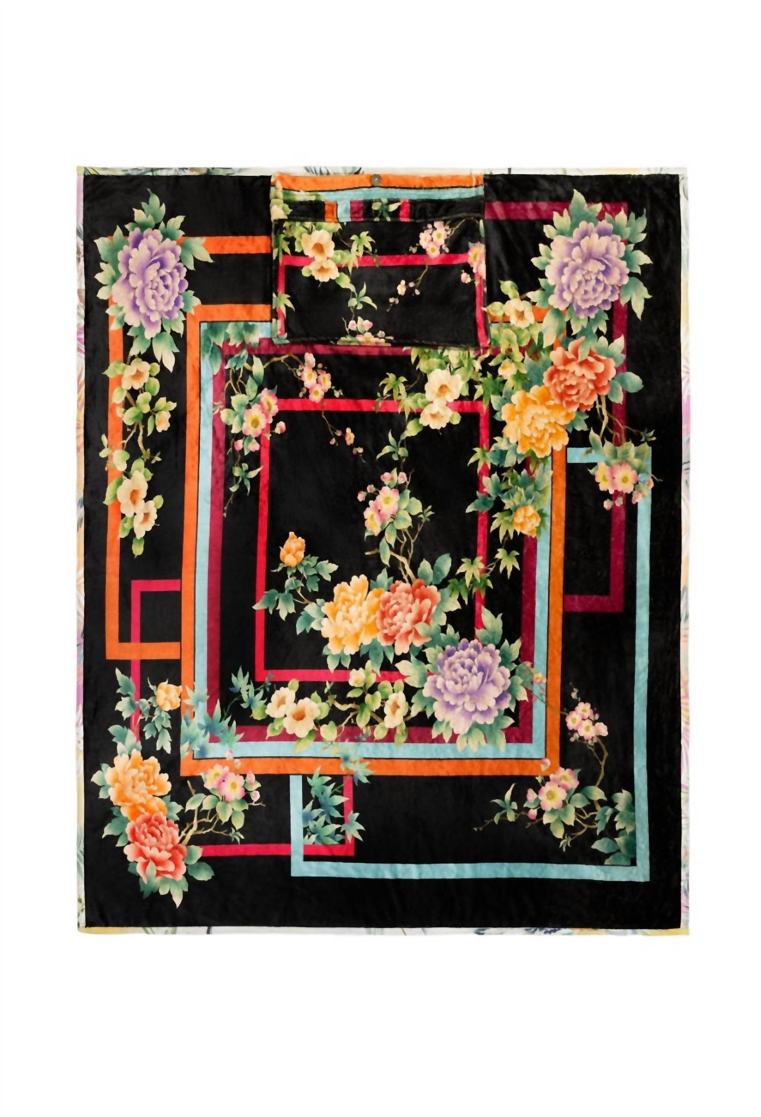 The Le Jardin Travel Blanket, adorned with bold colors and vibrant florals, is designed for portability with its reversible feature and integrated pocket for easy folding. Made of 100% Polyester, it measures 68" x 53". Recommend machine washing cold, using non-chlorine bleach as needed, tumble drying low, laying flat to dry, and using a warm iron if necessary.