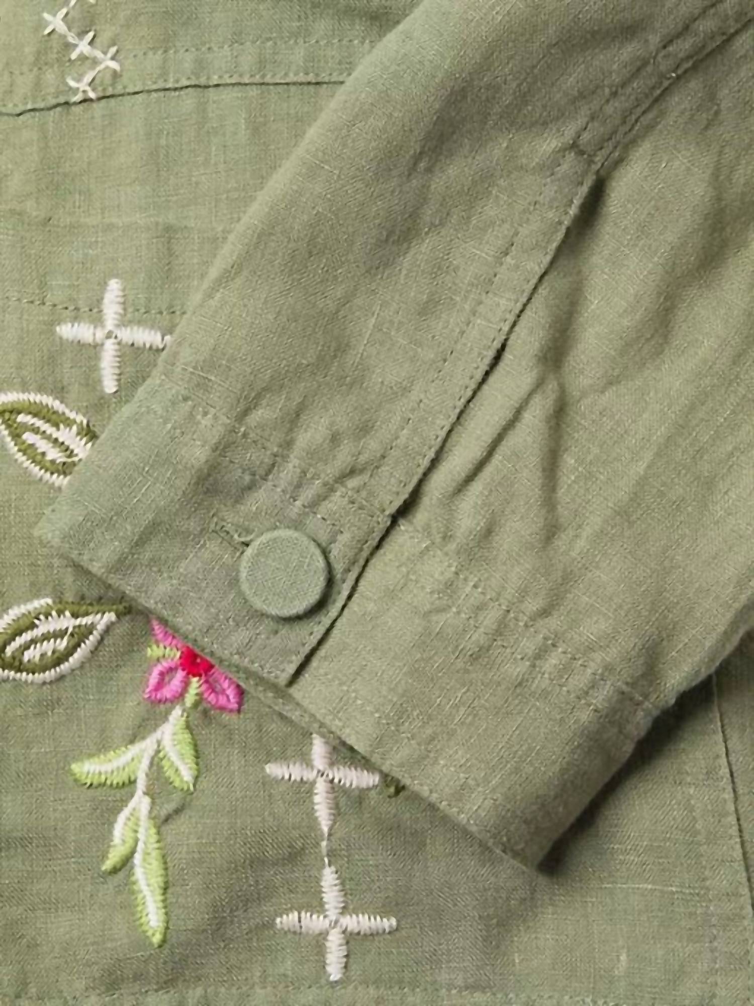 Cute, casual, and comfortable. This jacket is a must have. The 'Linen Workwear Jacket' from Johnny Was is a stunning 100% Linen button-up jacket. This jacket is perfect for work and play, featuring floral embroidery, functional pockets, and a flattering V-neckline.