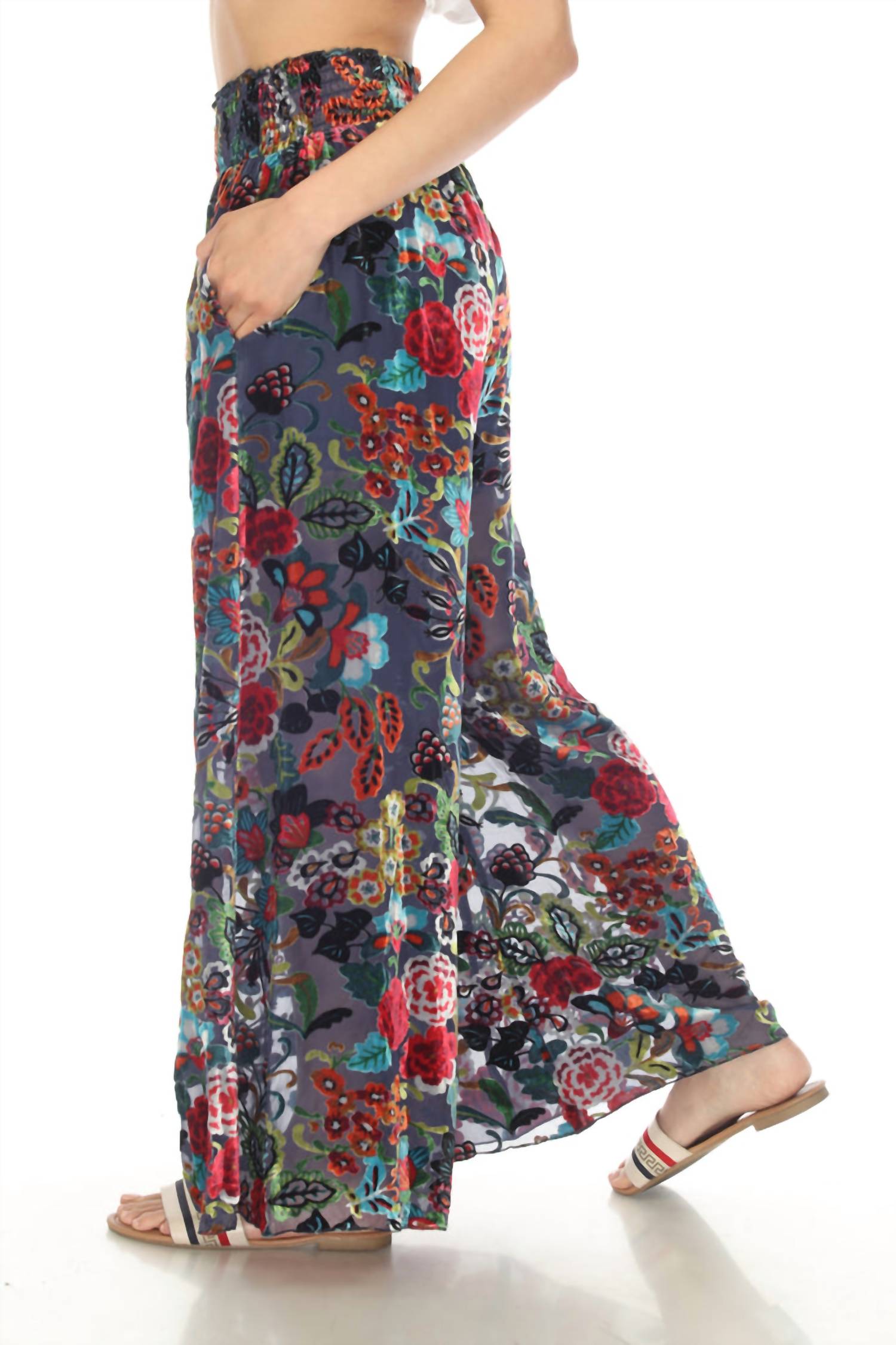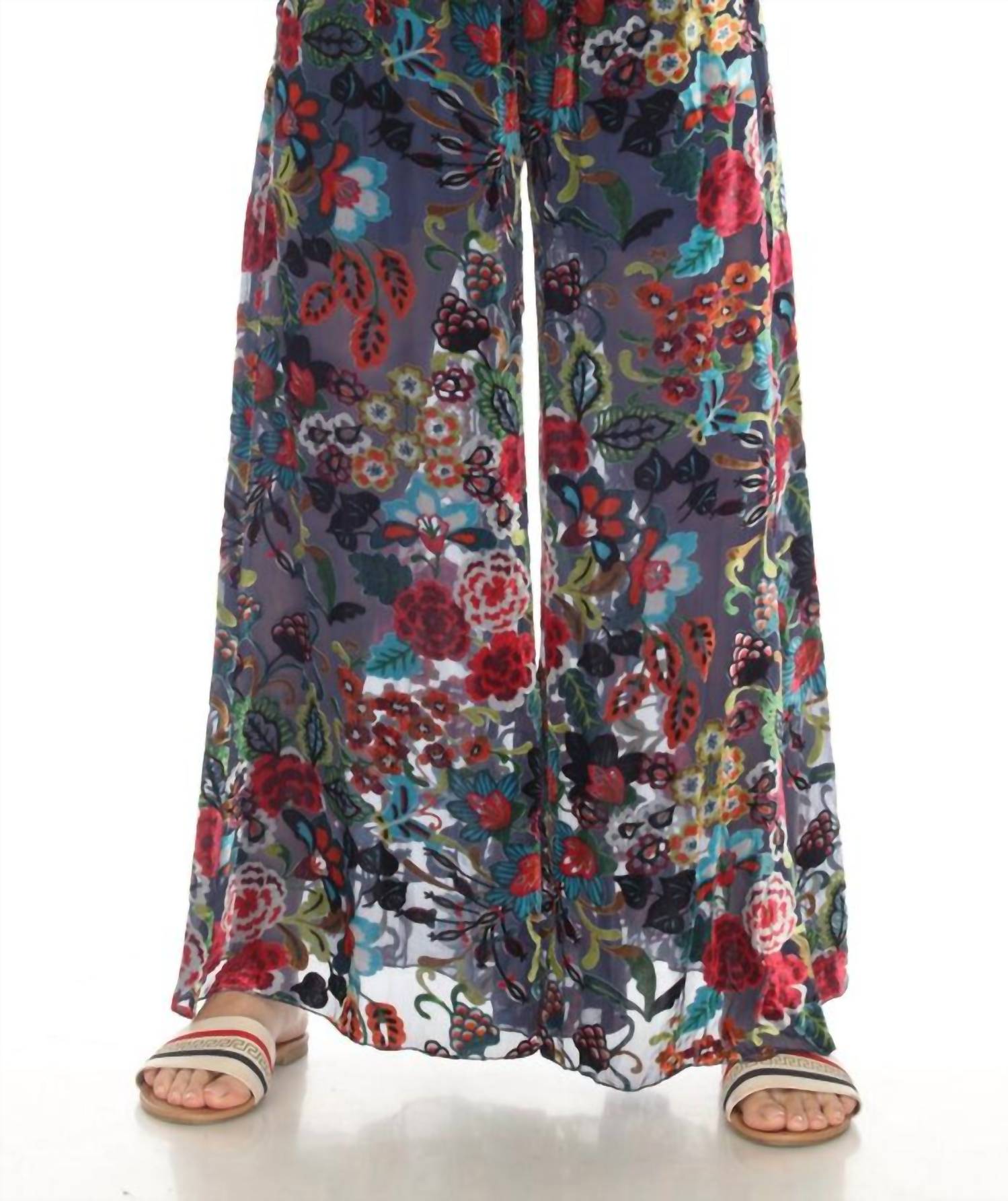 Revitalize your summer wardrobe with the Minto Burnout Rachel Pant by Johnny Was, a boho chic essential in vibrant multi-color. These high-rise, wide-leg pants feature a relaxed fit and a distinctive floral pattern for a carefree beach day look. Material: Crafted from lightweight rayon, this piece offers a fluid drape and easy pull-on closure. Care: Must be dry cleaned.