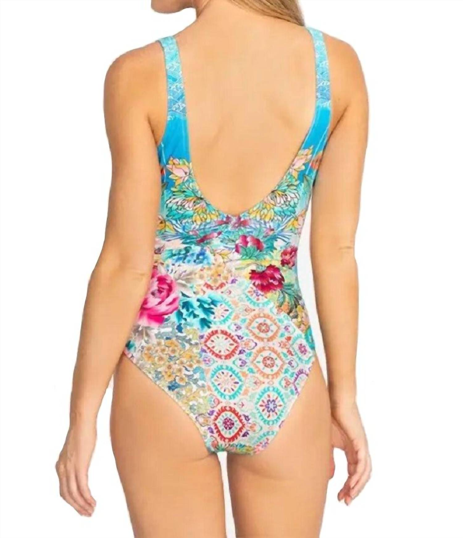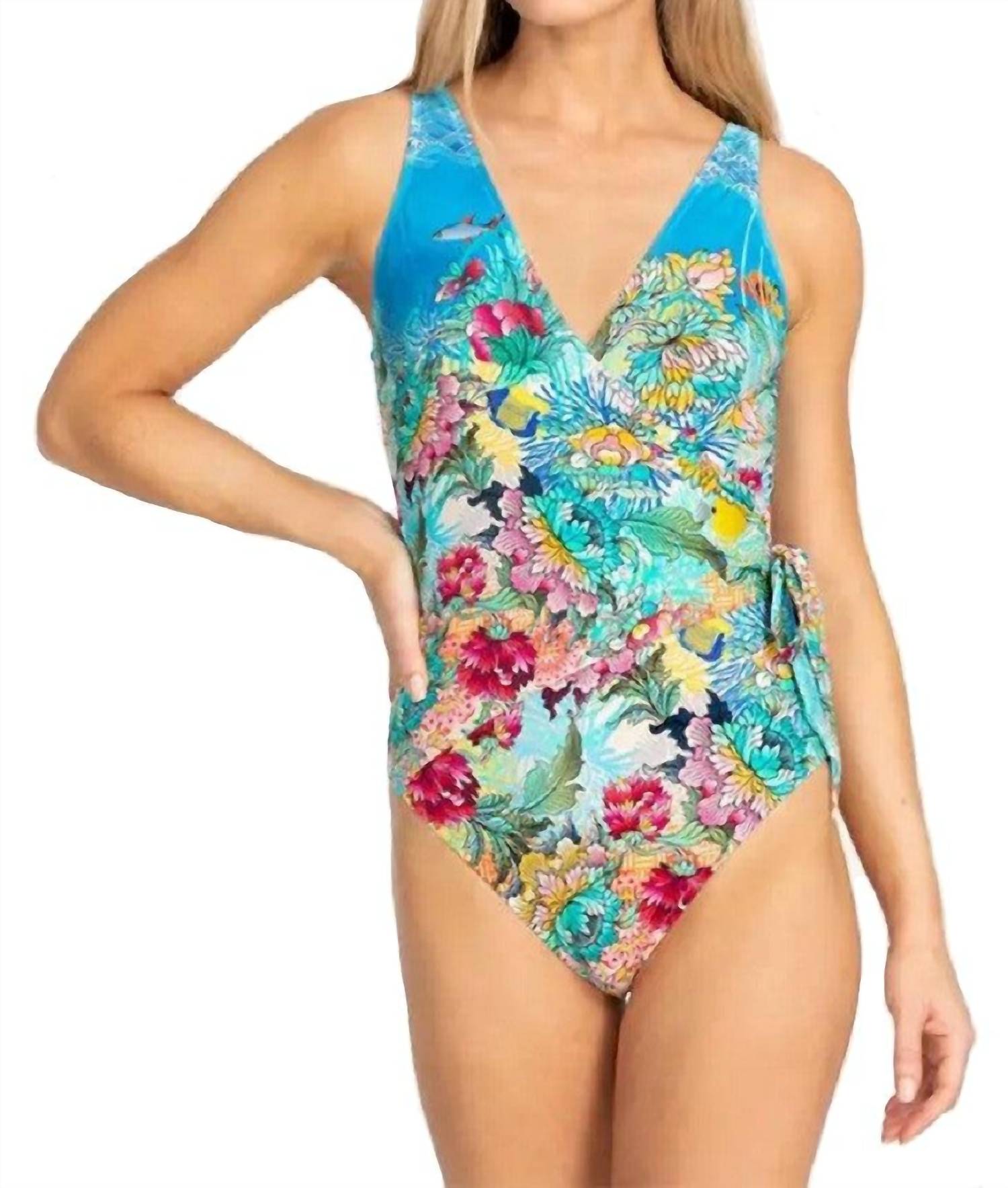 Designed to perfection and fit to flatter. You are going to love this one piece swimsuit. Botanical-infused suit features bright floral details and an ultra-flattering wrapped fit. 83% Polyamide/17% Elastane. Made from Xtra Life Lycra. Chlorine, fade and pill resistant. UPF 50+ offers sun protection from harmful UV rays.Measurements for size medium: Cup Size- 17" , Front Rise- 16". Rinse in cool water after use. Dry thoroughly. Hand wash cold se parately. Wash inside out. Do not bleach. Do not wring or twist. Line dry or flat dry. Do not iron.