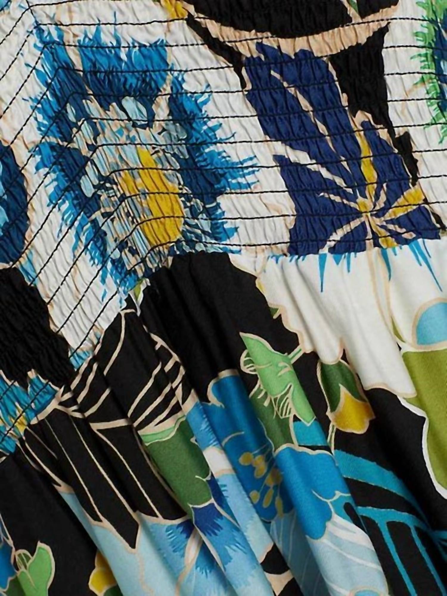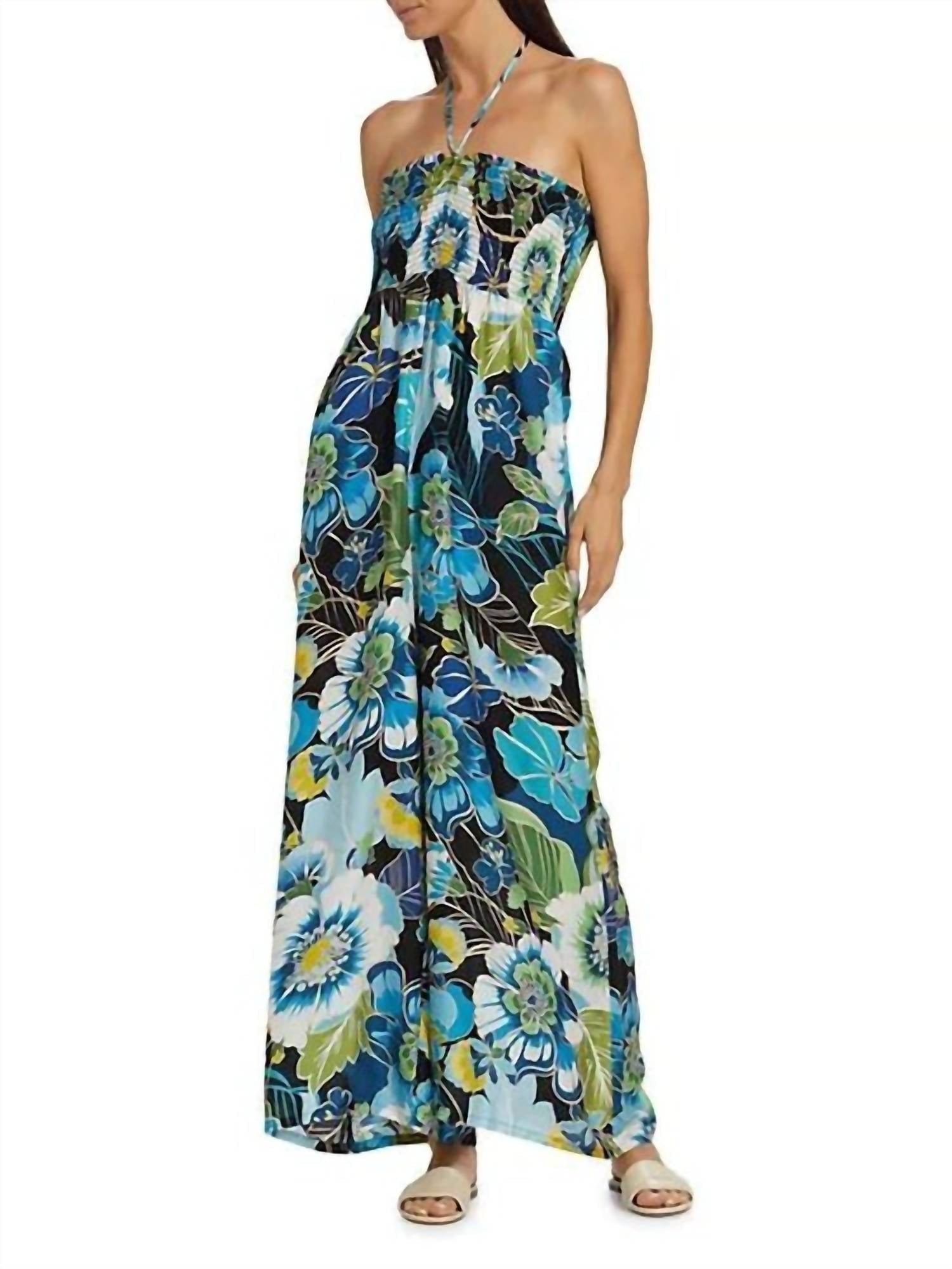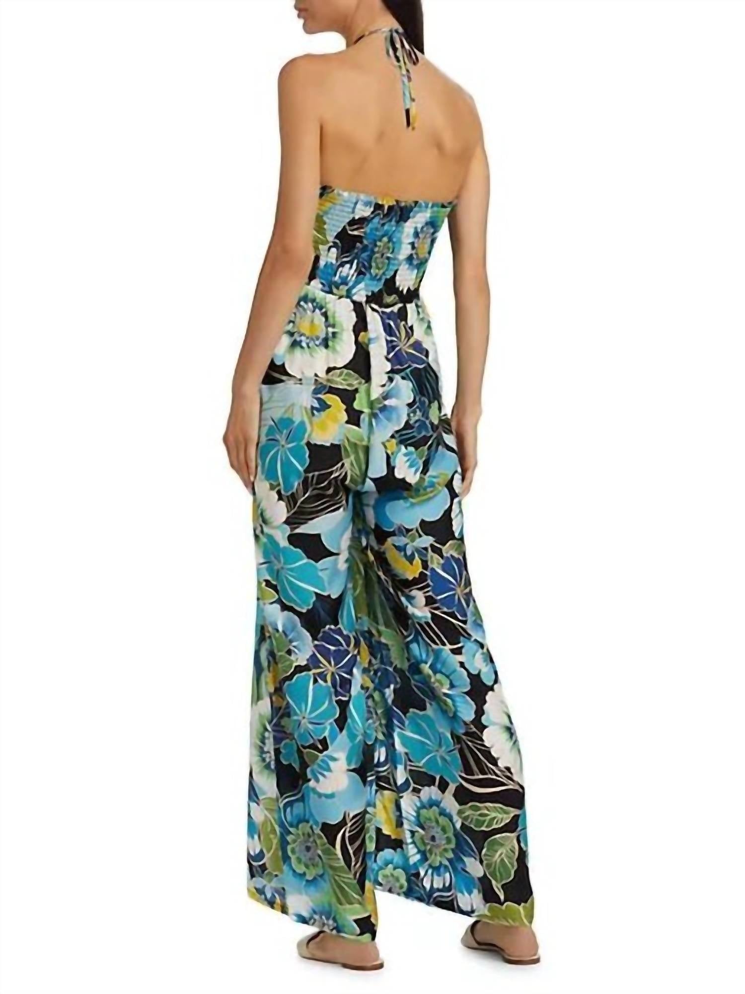 From Beachside to Brunch, this is a must-have for any vacation. Printed with a tonal floral motif, the Jenn jumpsuit features a tie-neck, a shirred bodice, and a comfortable wide-leg fit. 81% Rayon, 19% Silk. Hand Wash