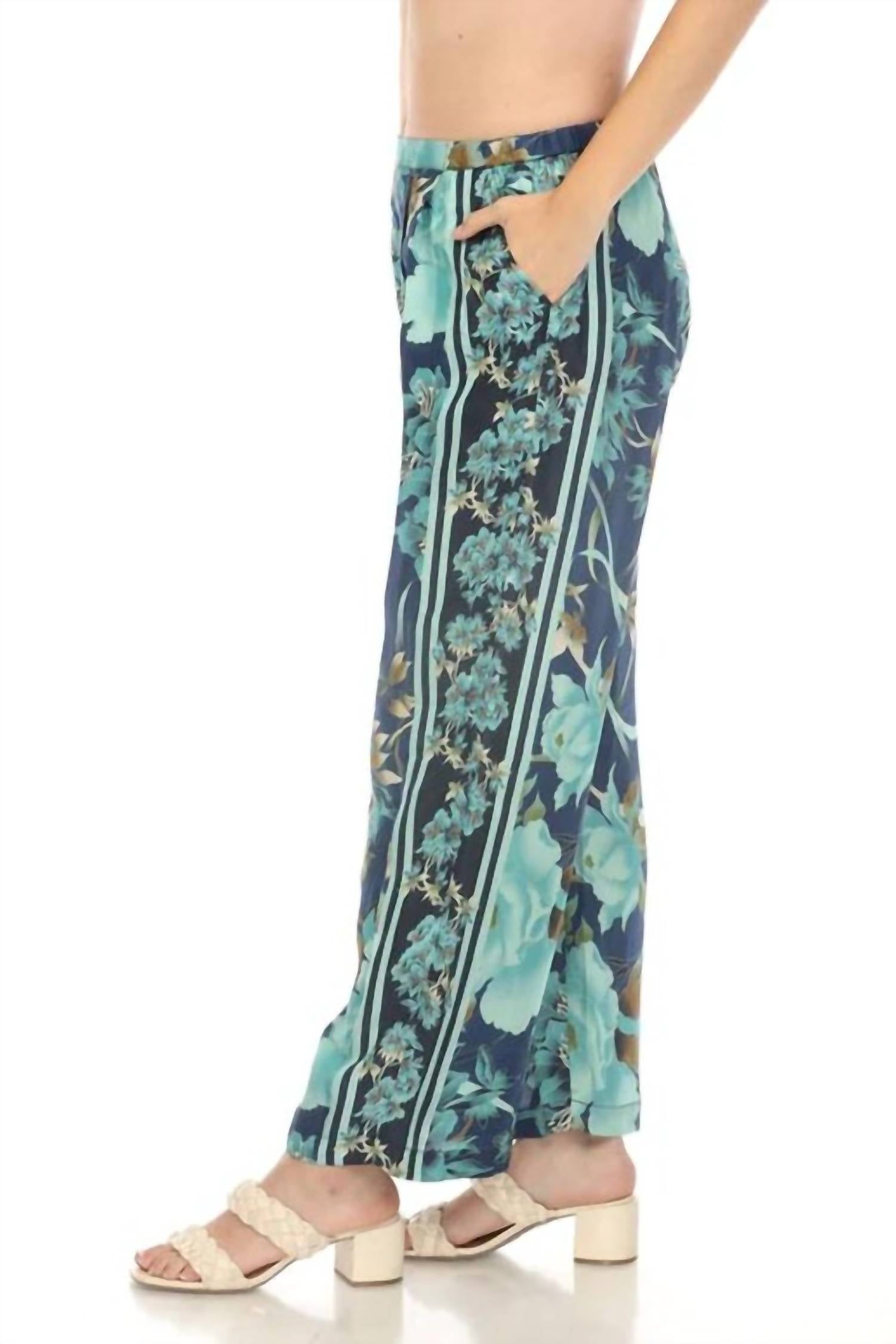 The Terri Pleated Pants are the perfect embodiment of effortlessly chic, combining coziness and style. Ensure your wardrobe shows you off to your best advantage with clothing from Johnny Was. These pants are made of lightweight fabric with a pleated front and feature a floral print with side stripes. It also features a pull-on style with an elastic waist, side pockets, and a wide leg. 60% Cupra 40% Rayon
