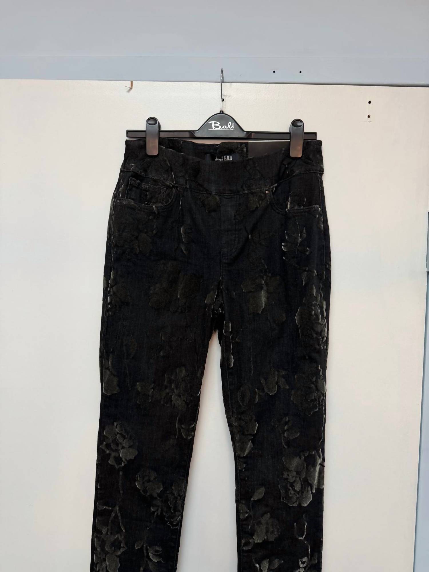 Joseph Ribkoff - Flocked Velvet Floral Print Jeans