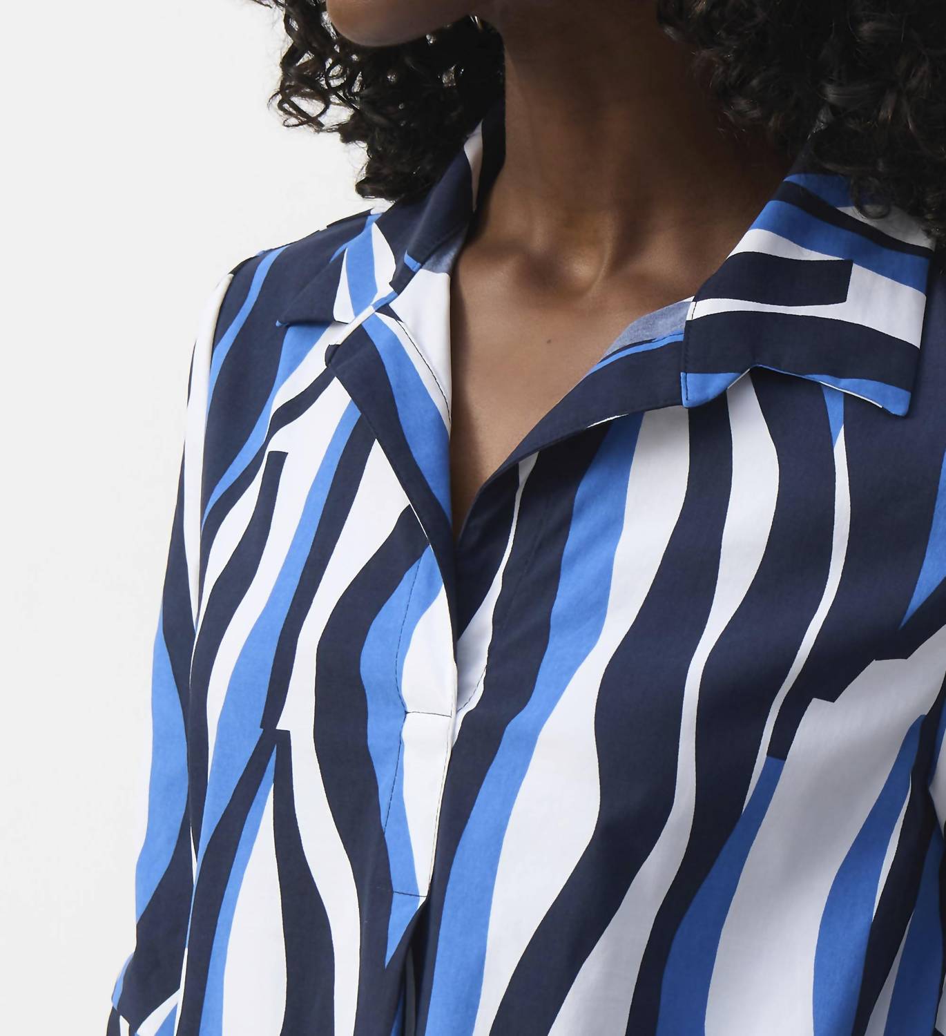 Introducing the Trapeze Shirt Dress by Joseph Ribkoff, a sophisticated piece in Vanilla Multi designed for a chic look. This knee-length shift dress features 3/4 straight sleeves and a notched-collar neckline, complemented by stylish button accents. Crafted from a comfortable nylon blend, it includes convenient side pockets and a pull-on closure. Made in Canada, care for this dress involves hand washing and line drying.