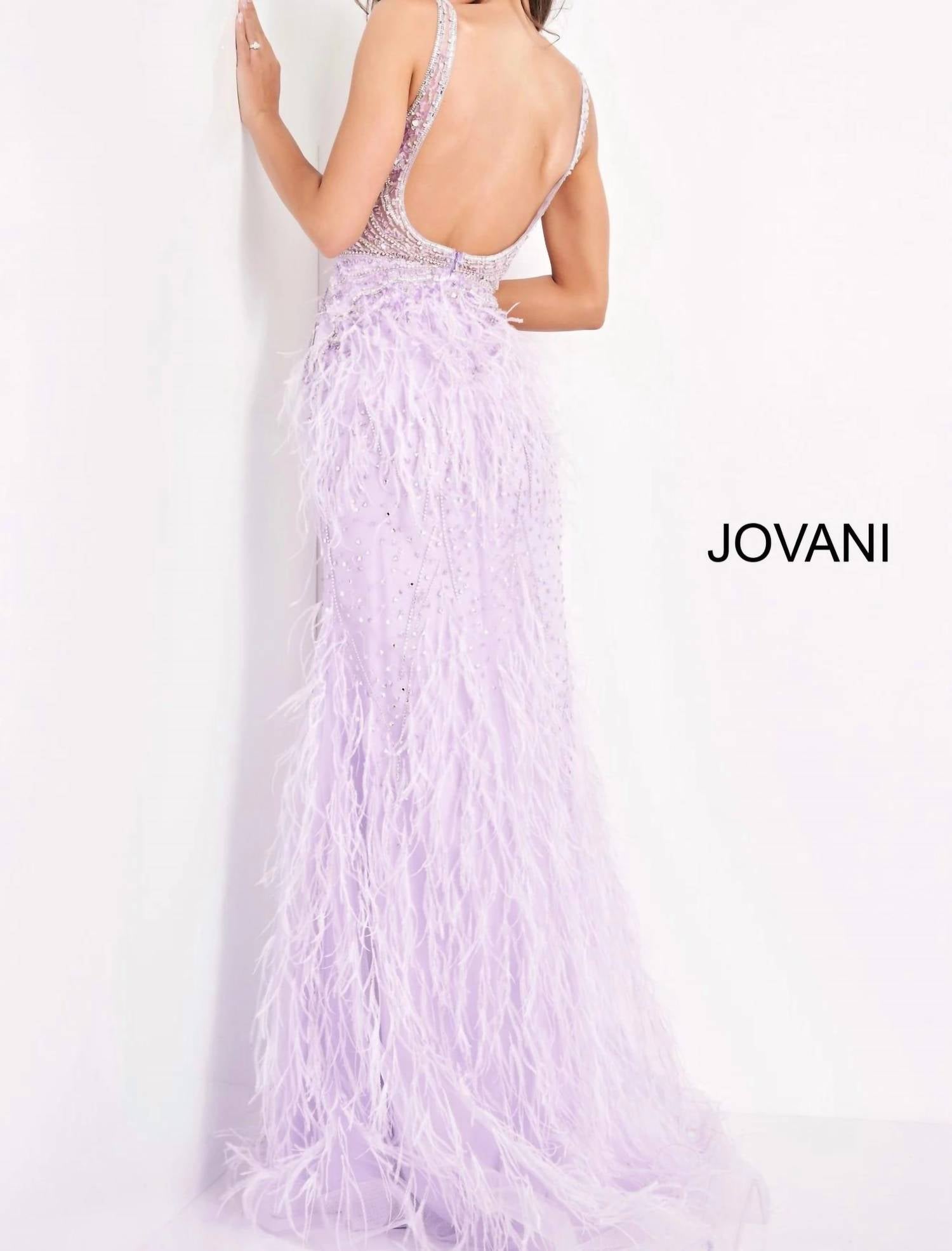 Just add a cute little clutch and a matching heel for the perfect event look. This luxurious floor-length gown is a masterpiece of design with its intricate beading, radiant sequins, and the finest sheer fabric. The dress features a daring V-neckline and enchanting sleeveless style, with a fit and flare silhouette that accentuates the figure flawlessly. Adorned with exquisite feathers that cascade gracefully down the skirt, this dress is a true epitome of glamour and elegance.