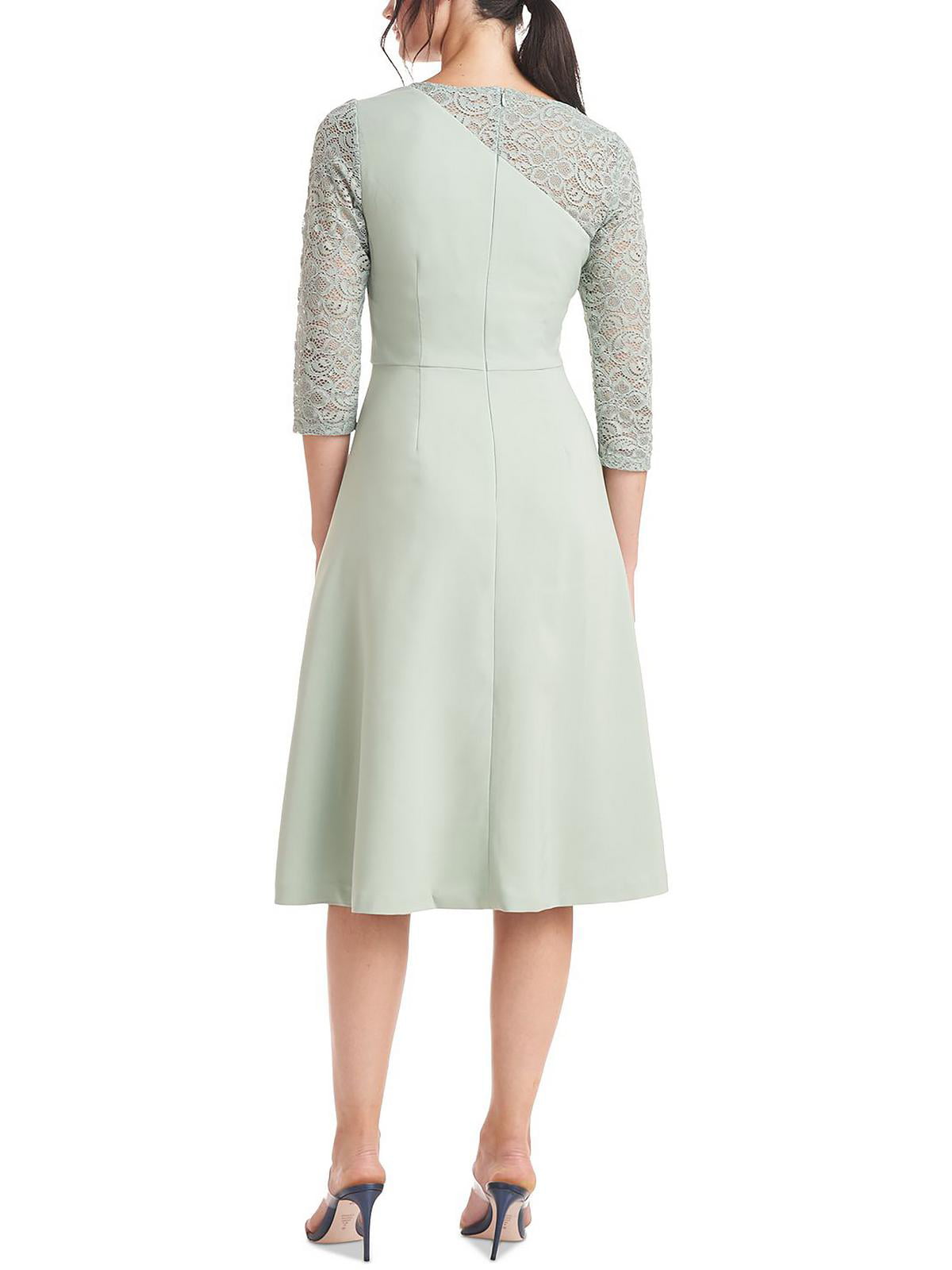 Womens Fit & Flare Dress|Lace Trim|Knee 3/4 Sleeve