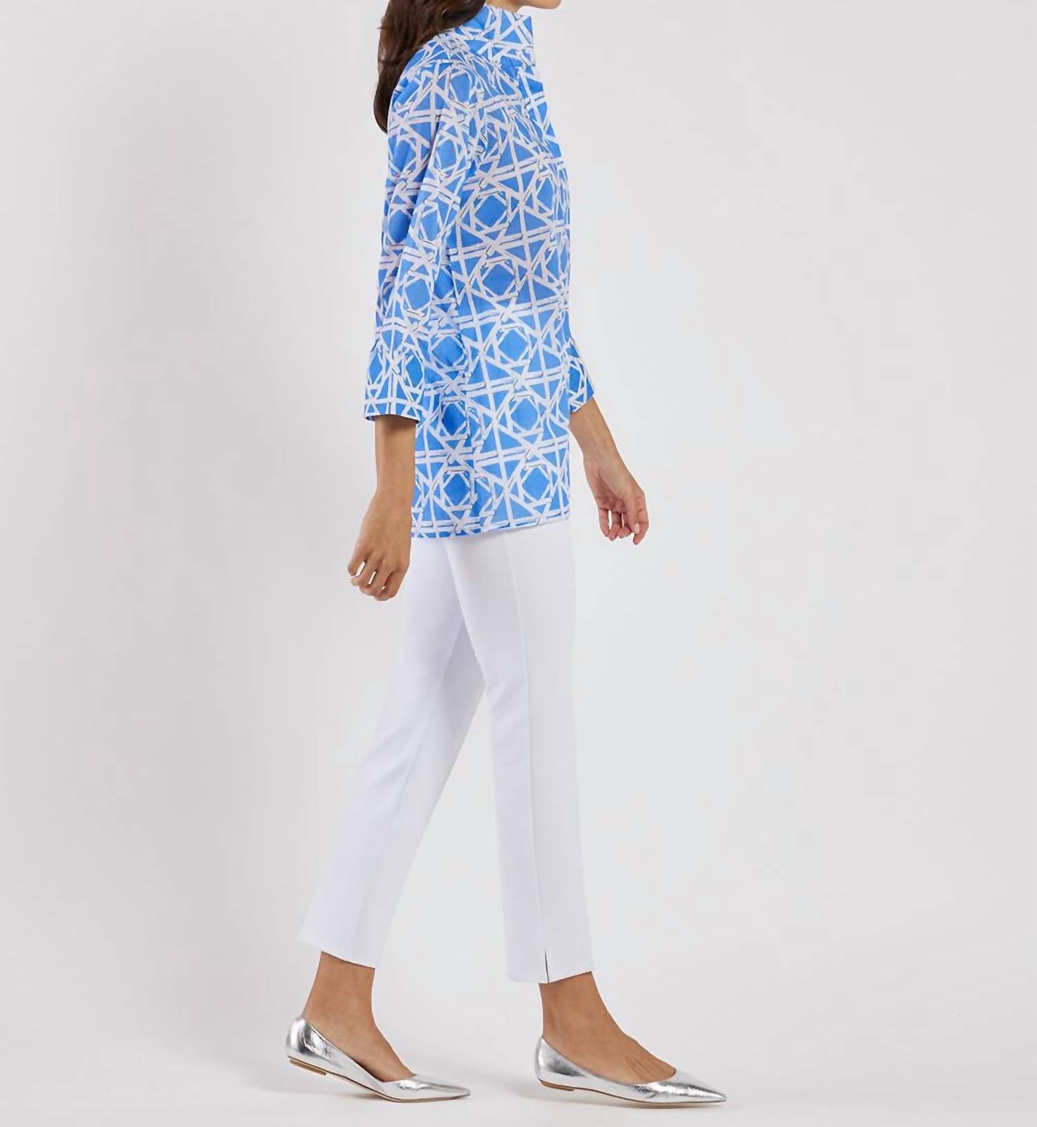 A versatile blouse that works from desk to dinner! Discover the Cricket Long Sleeve Top by Jude Connally, crafted from elegant cotton voile for effortless style in Bamboo Rattan Harbor Blue. This top features long sleeves, a sophisticated stand collar, and shell buttons, making it a charming addition to your wardrobe. The shirt, made in India, measures 28 inches from the top of the center back (Size S). Care for this special garment by machine washing and line drying, and use a cool iron if necessary. Ideal for springtime outings and special occasions.