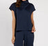 Introducing the Tillie Jude Denim Top by Jude Connally, a sleek and stylish choice for any occasion. This navy blue top features short sleeves and a mockneck, providing a minimalist and modern look. With a garment length of 23.375 inches, this solid pattern piece has no pockets and is easy to wear with its pull-on closure. Composed of polyester and made in the U.S.A., care for this top is a breeze with machine wash and line dry instructions. Perfect for spring holiday parties, especially Thanksgiving.