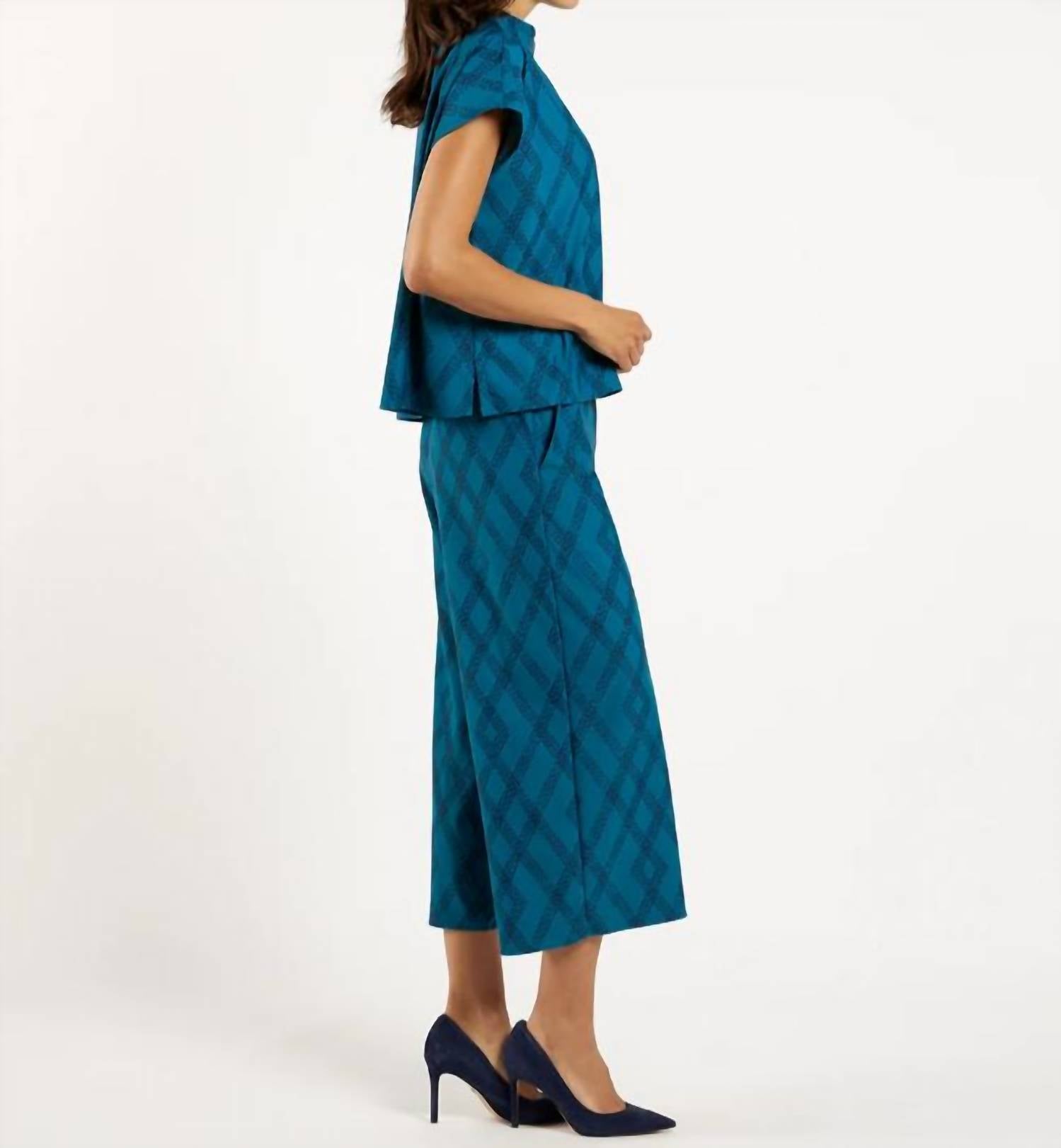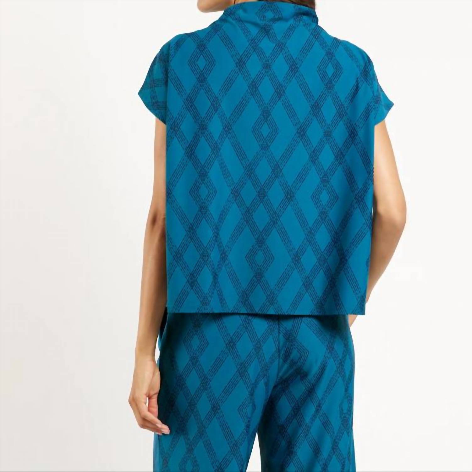 Discover the Tillie Top by JUDE CONNALLY, perfect for any holiday party or spring gathering. This short sleeve pullover features a chic crewneck design and is crafted from a Nylon Blend in a striking Diamond Lattice Peacock pattern. Made in the U.S.A., the top measures 23.375" from the top of the center back and is designed for effortless style and comfort. Care is easy with this piece—simply machine wash and cool iron if necessary.