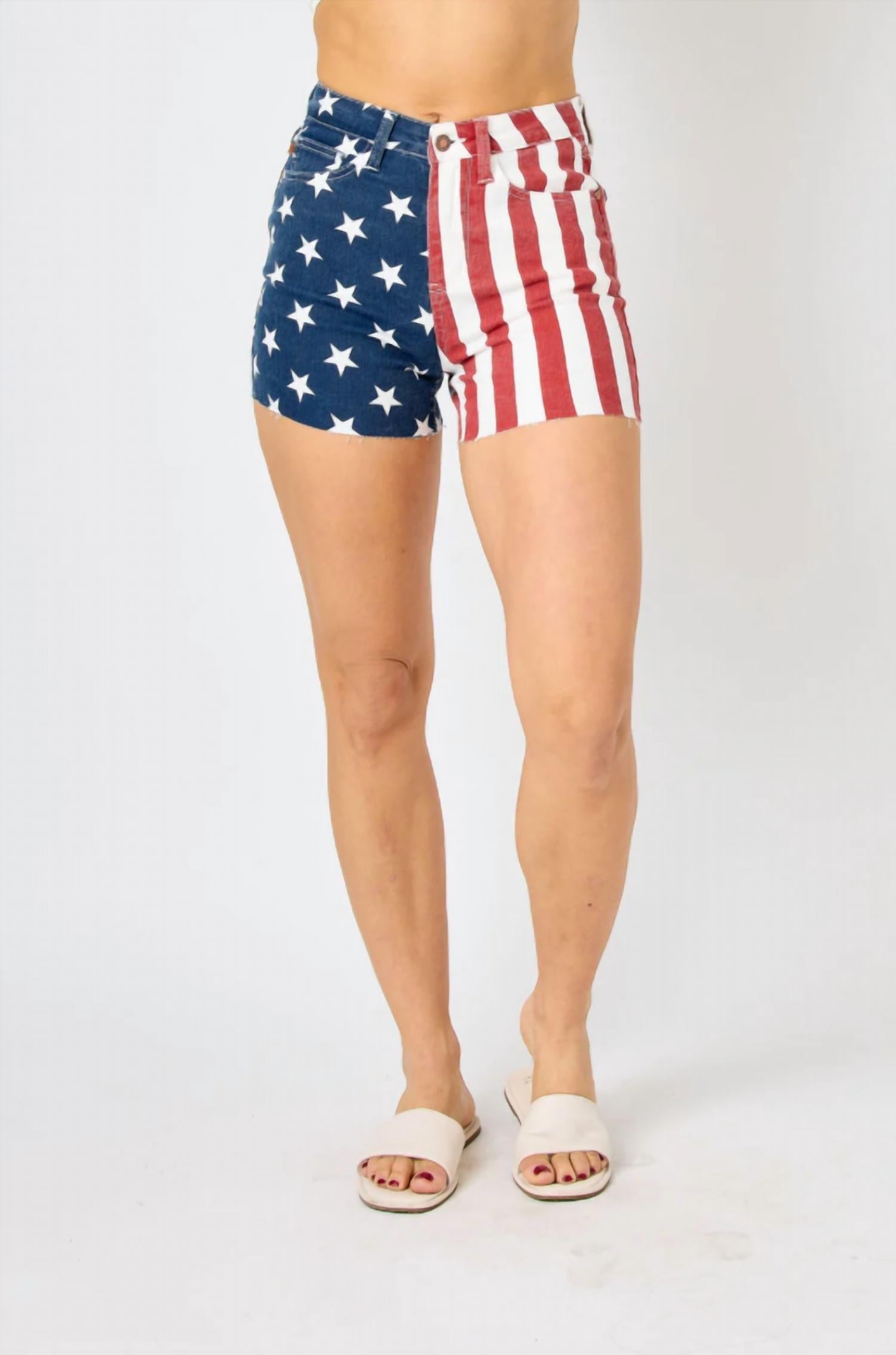 Judy Blue - High Waist American Flag Fray Hem Shorts
