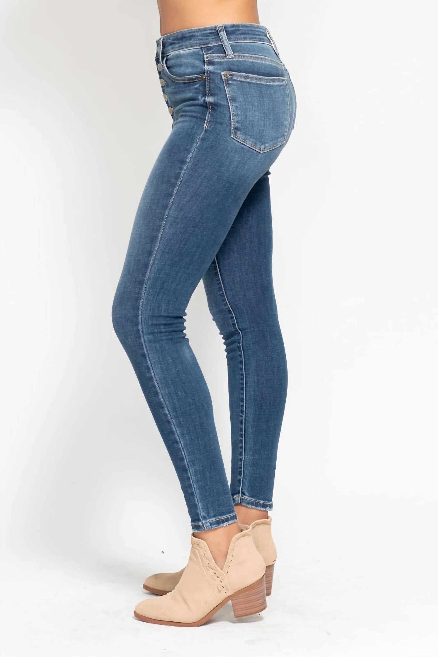 Elevate your denim collection with the Judy Blue High Waist Non-distressed Skinny Jeans, offering a stylish medium wash that's both chic and comfortable. These jeans are crafted from a cotton blend, featuring 93% cotton, 6% polyester, and 1% spandex for unmatched stretch and comfort. Country of origin information is unavailable, but they feature a zip closure and practical pockets. Dimensions include a front rise of 10.5 inches and an inseam of 28.5 inches. Care is straightforward: machine wash and tumble dry. Designed with a high-rise waist and skinny leg, these jeans are your go-to for effortless style.