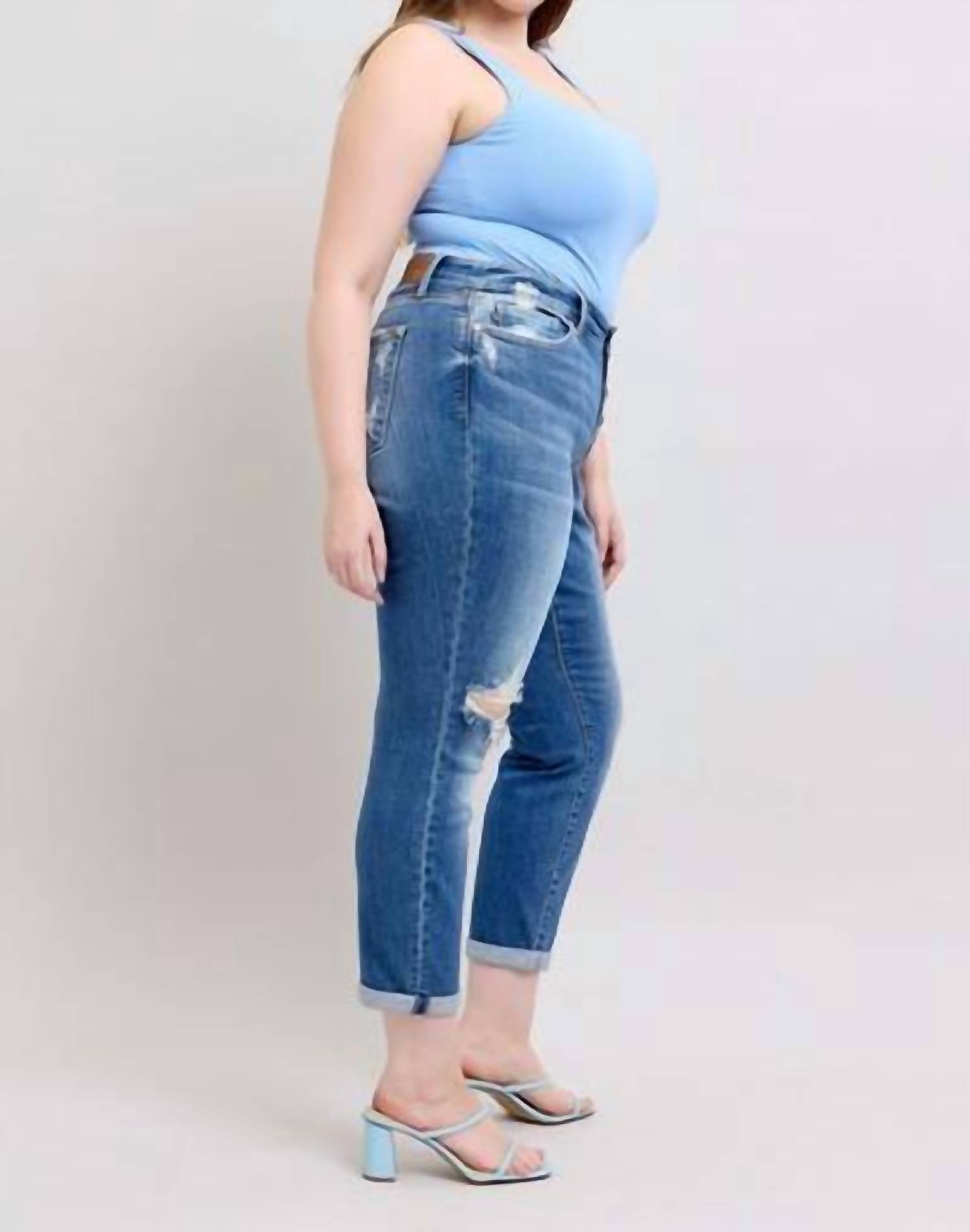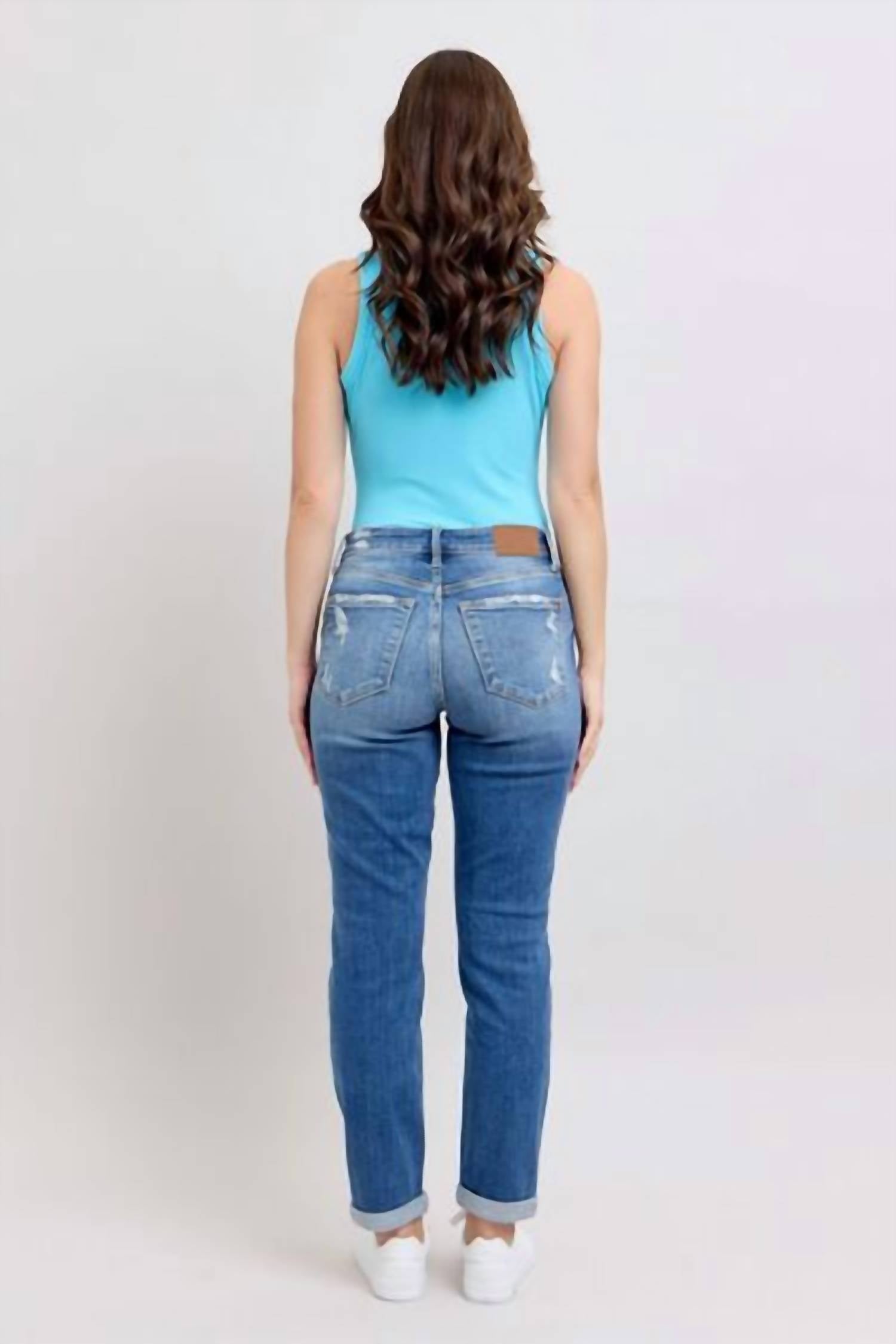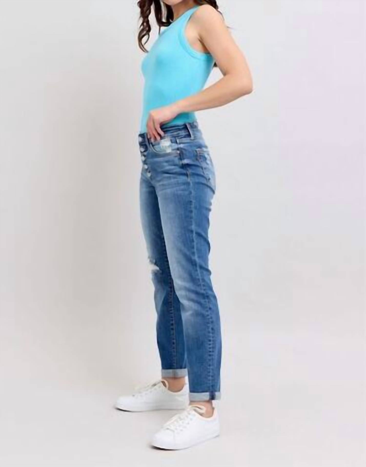 Judy Blue - Mid Rise Button Fly Distressed Boyfriend Jeans