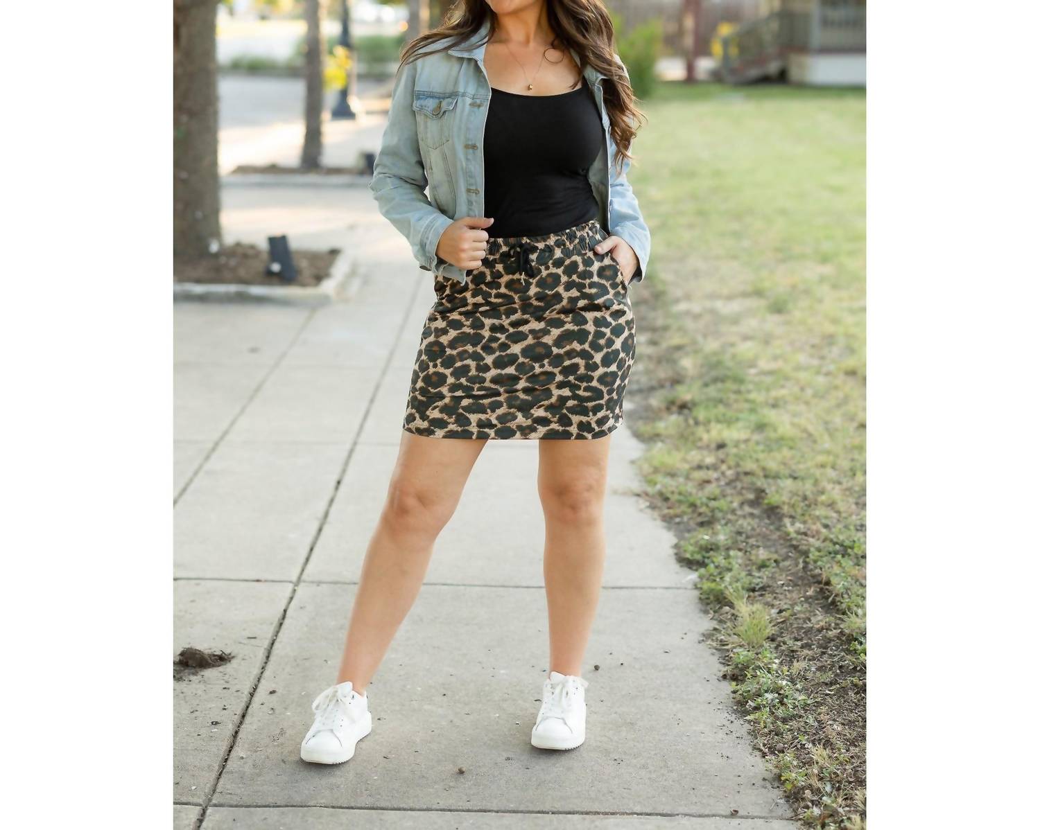 Tuck in your favorite tee for a more laid-back vibe. Introducing the Julia Rose Liana 2.0 Jogger Skirt, a perfect blend of playful style and comfort with its fierce leopard print design. This mini skirt features a convenient tie closure and practical pockets, with a versatile 16-inch length. Made from a cozy 92% polyester, 8% spandex blend, it's ideal for a Vacation-ready wardrobe this Summer. Embrace the Maximalist trend with ease and confidence.
