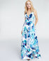 | Approx. 48 long from center open back to hem. Length varies 1/4 between sizes| Deep V-neckline; ball gown silhouette| Double hook-and-eye closure at back neck; hidden zipper at back waistline| Cutout back; bra cups; slit at faux-wrap skirt| Lined