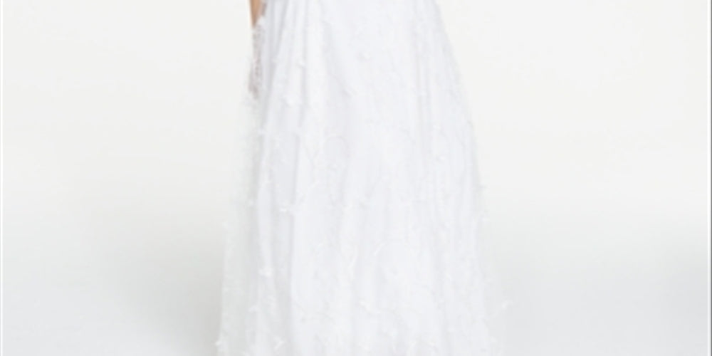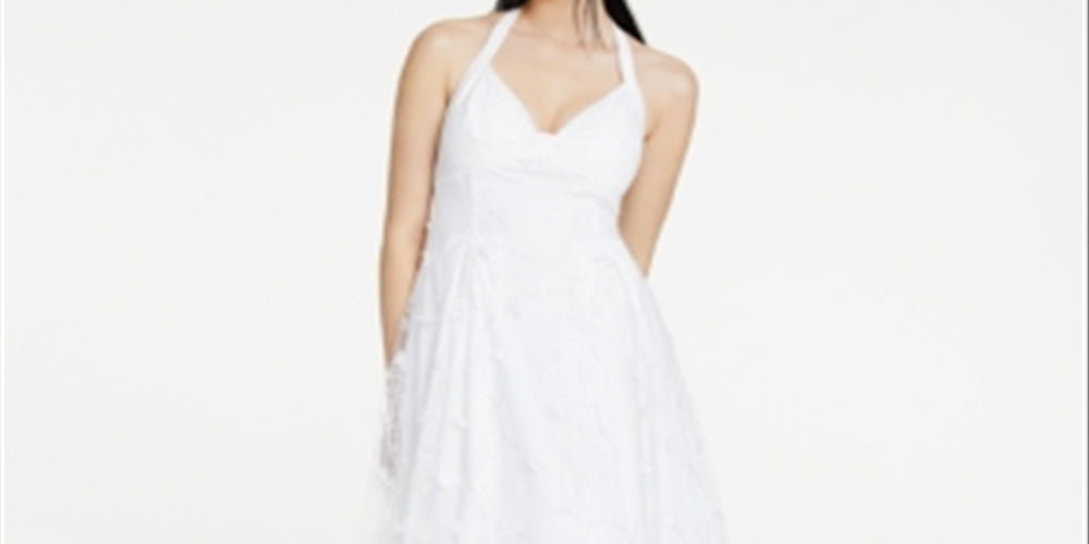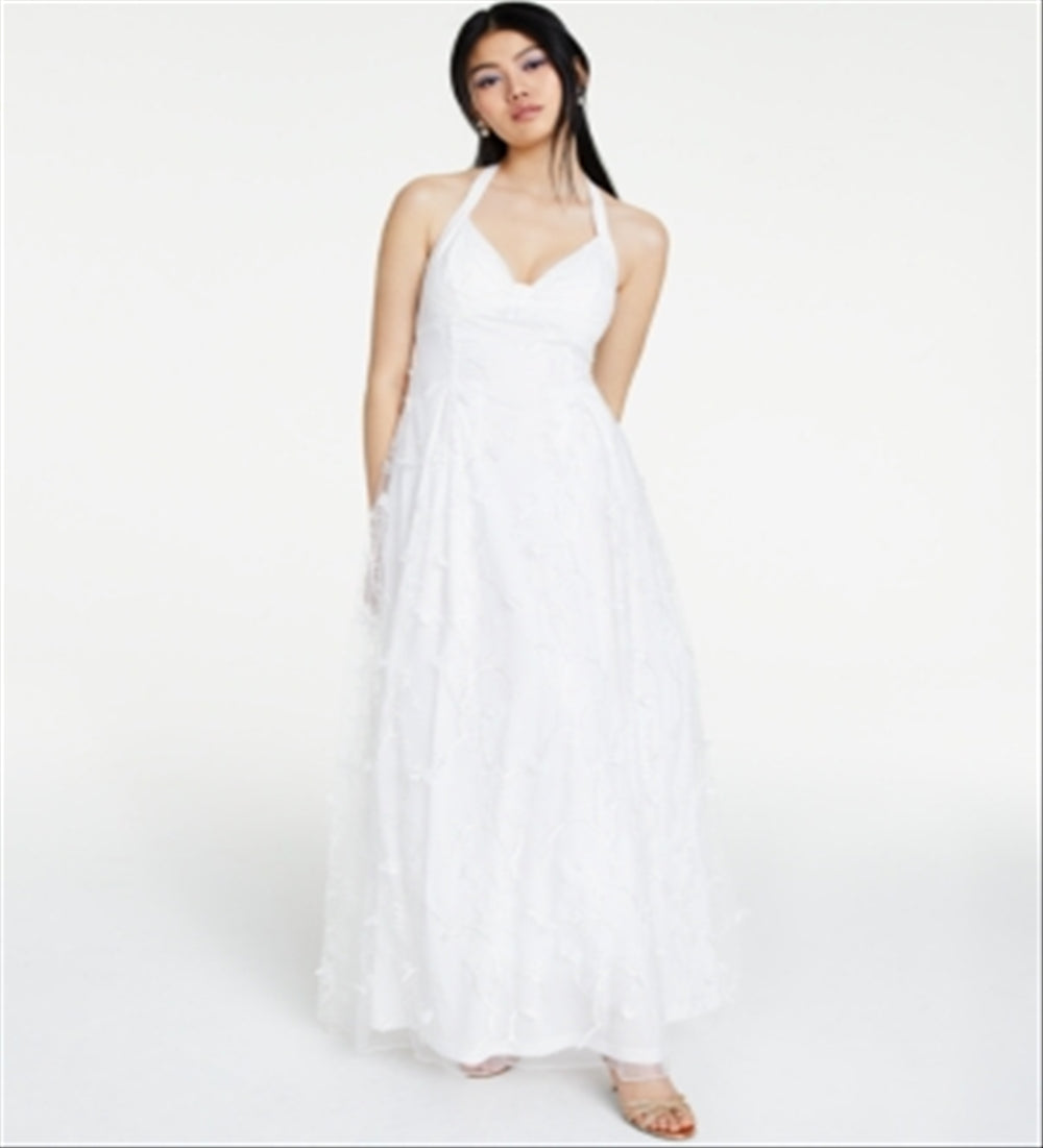 Jump Women's Sheer Floral Sleeveless Halter Full Length Formal Fit Flare Dress White Size 9/10