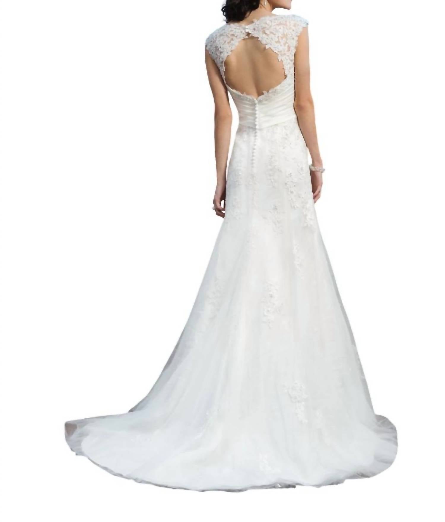 Say 'I do' in style and let your personality shine through in this elegant and timeless dress. With its classic silhouette, this is the perfect wedding dress for the stylish bride to be.