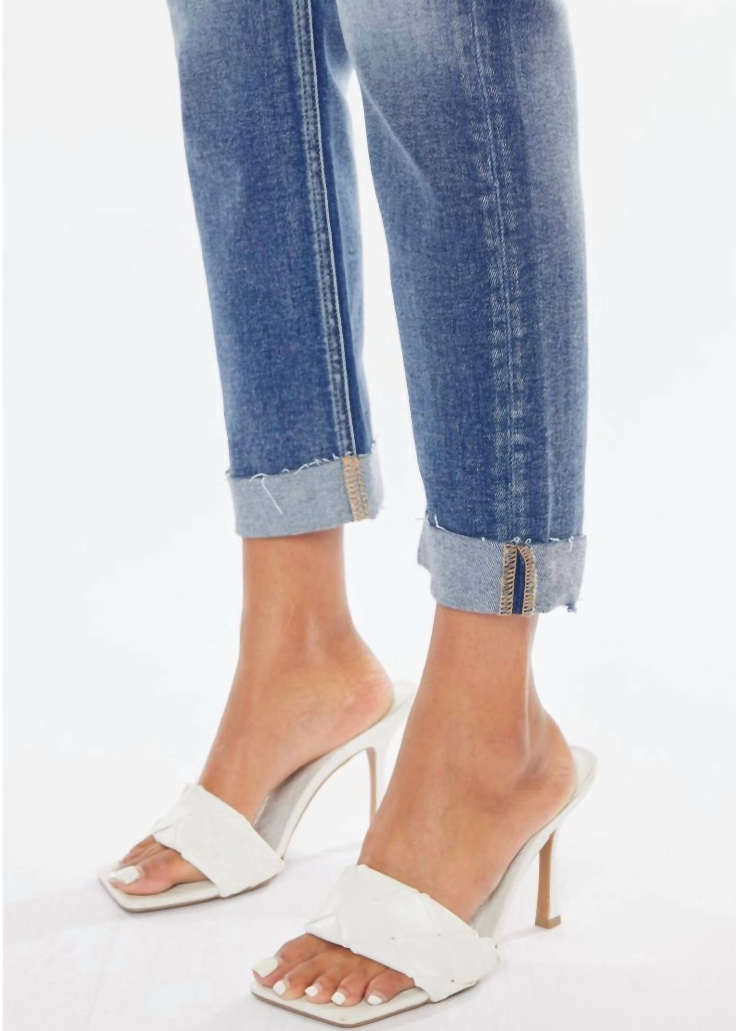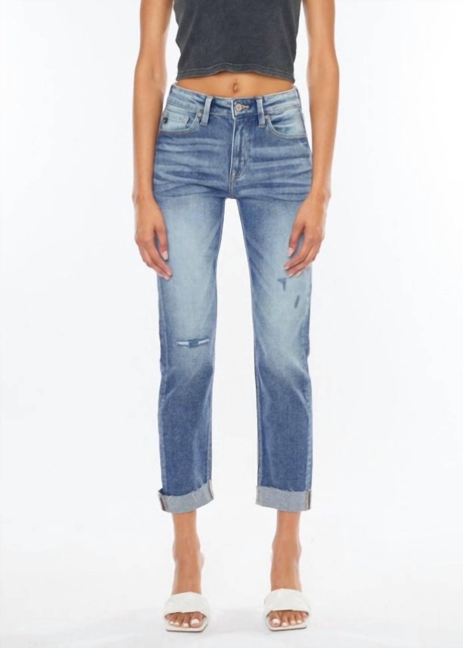 Perfect blend of comfort and style. High-rise slim straight jeans feature a medium stone wash with a practical button closure. Made from 93% cotton, 5% polyester, and 2% spandex. Offer a comfortable stretch fit. With a rise of 10.5 inches and an inseam of 28.5 inches. Enjoy the practicality of pockets in these stylish straight-leg pants.